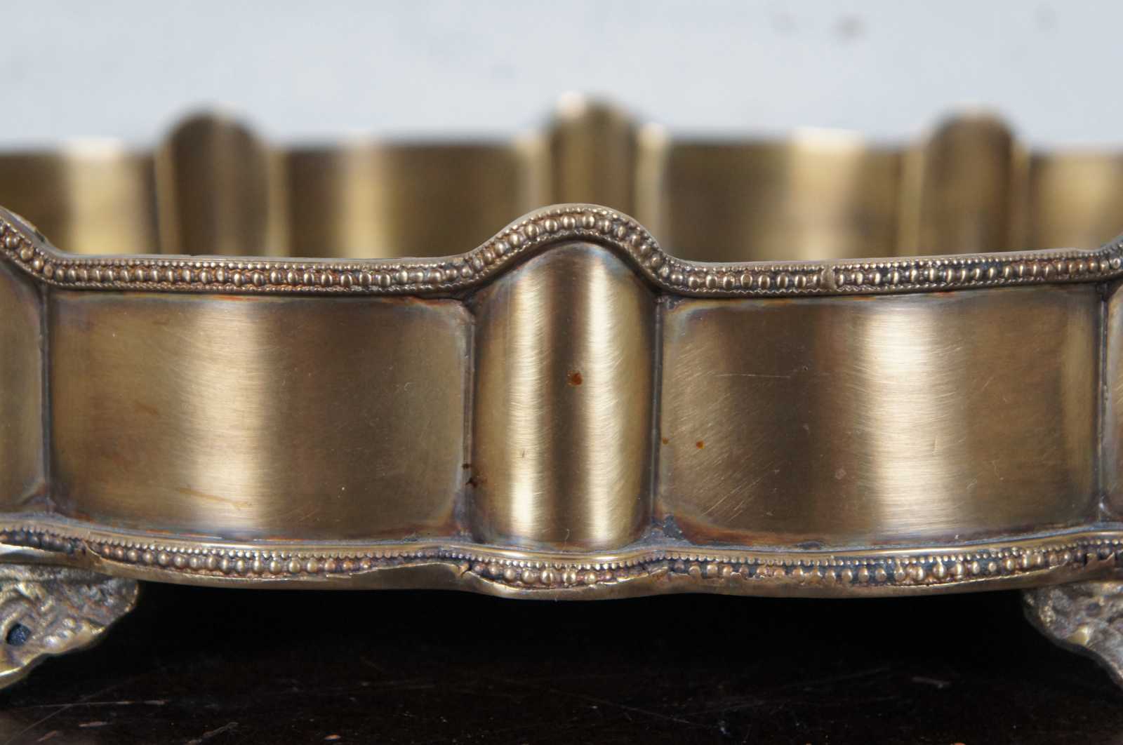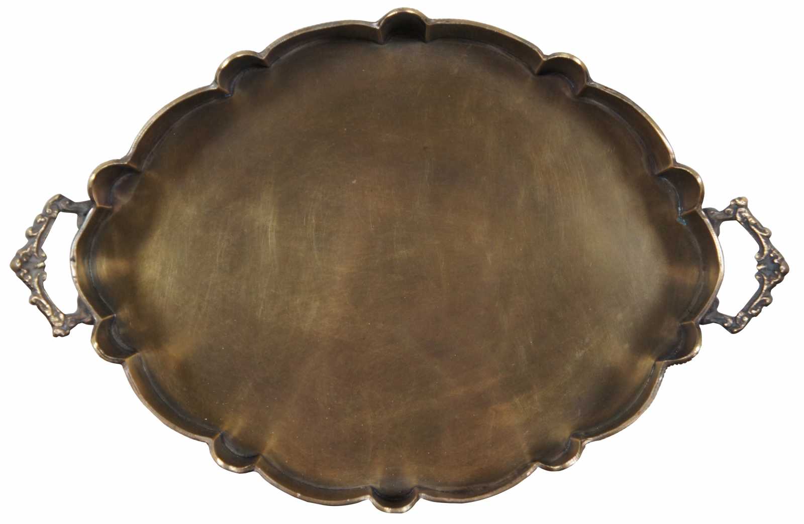 Indian Brass French Revival Scalloped Oval Footed Serving Tray with Handles 18"