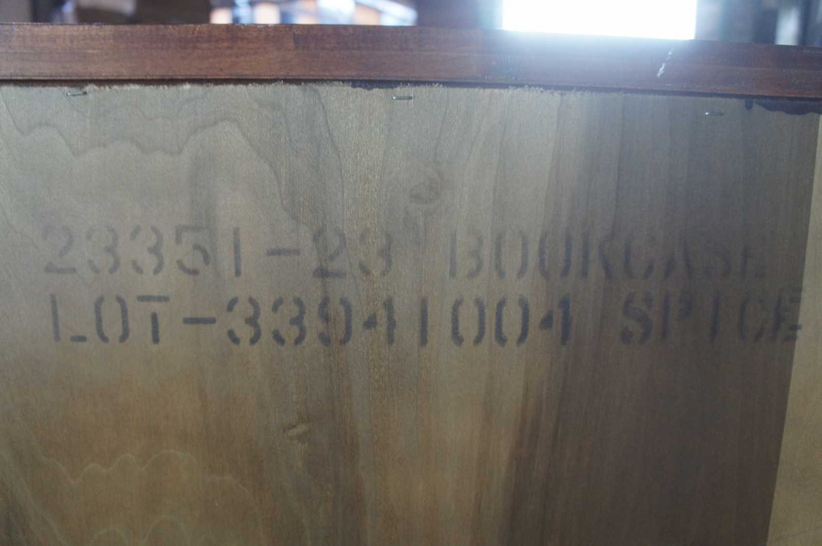 The perfect sized bookcase by Hickory White. Traditional styling in their spice finish. Medium wood tone with one fixed interior shelf. Room for 2 additional shelves. 23351-23