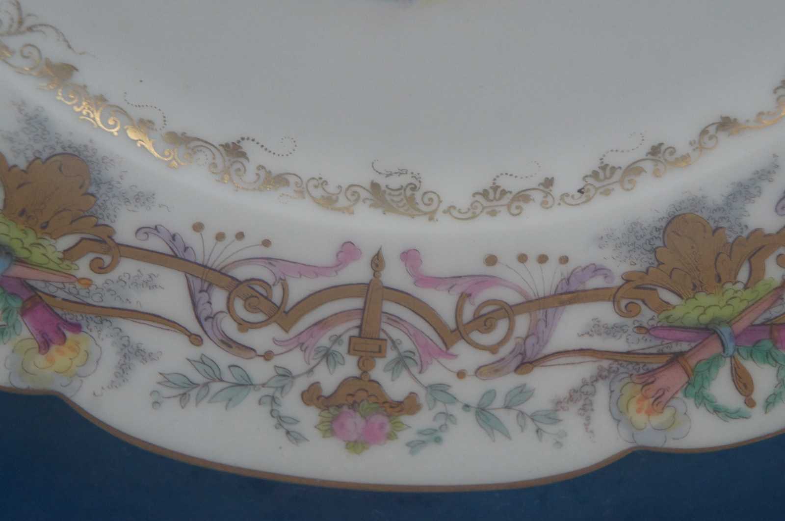 Framed antique 19th century Sevres porcelain plate by Chateau des Tuileries featuring a portrait of a noblewoman framed by pink and gold torches and flowers.