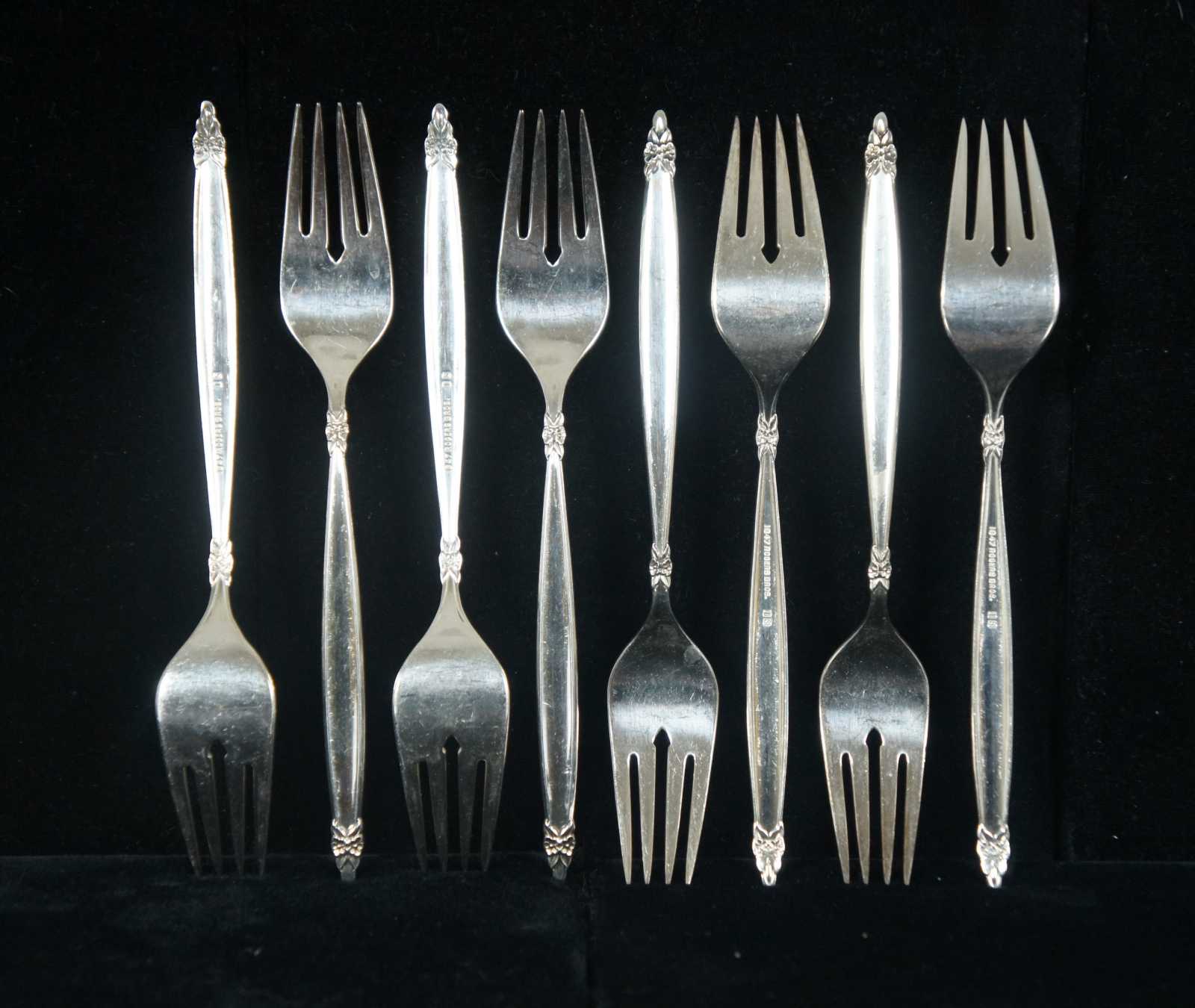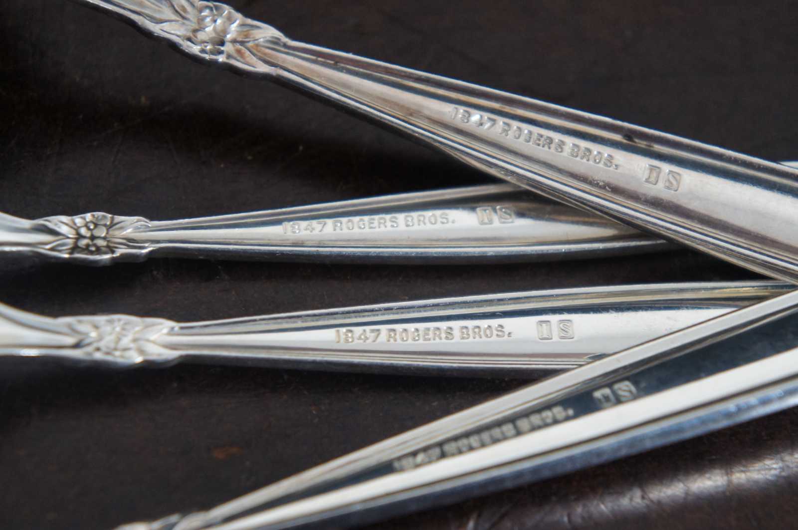 Vintage silver plate 8 place setting flatware set and chest by 1847 Roger Bros in the Garland pattern.