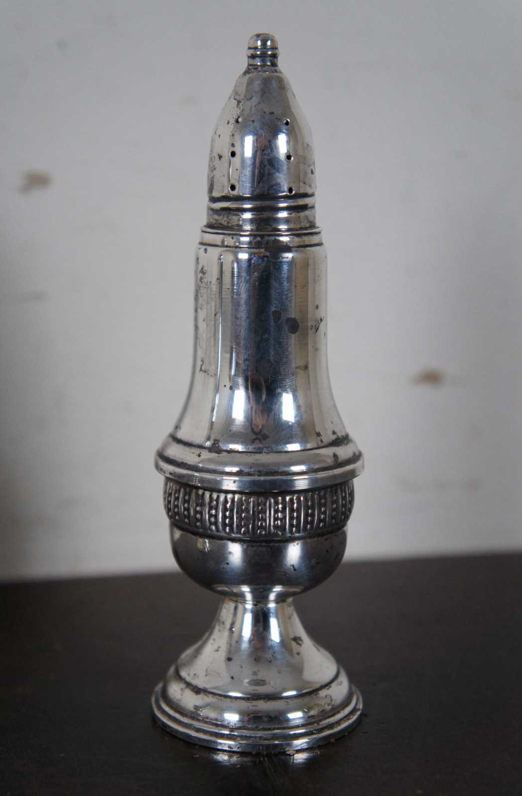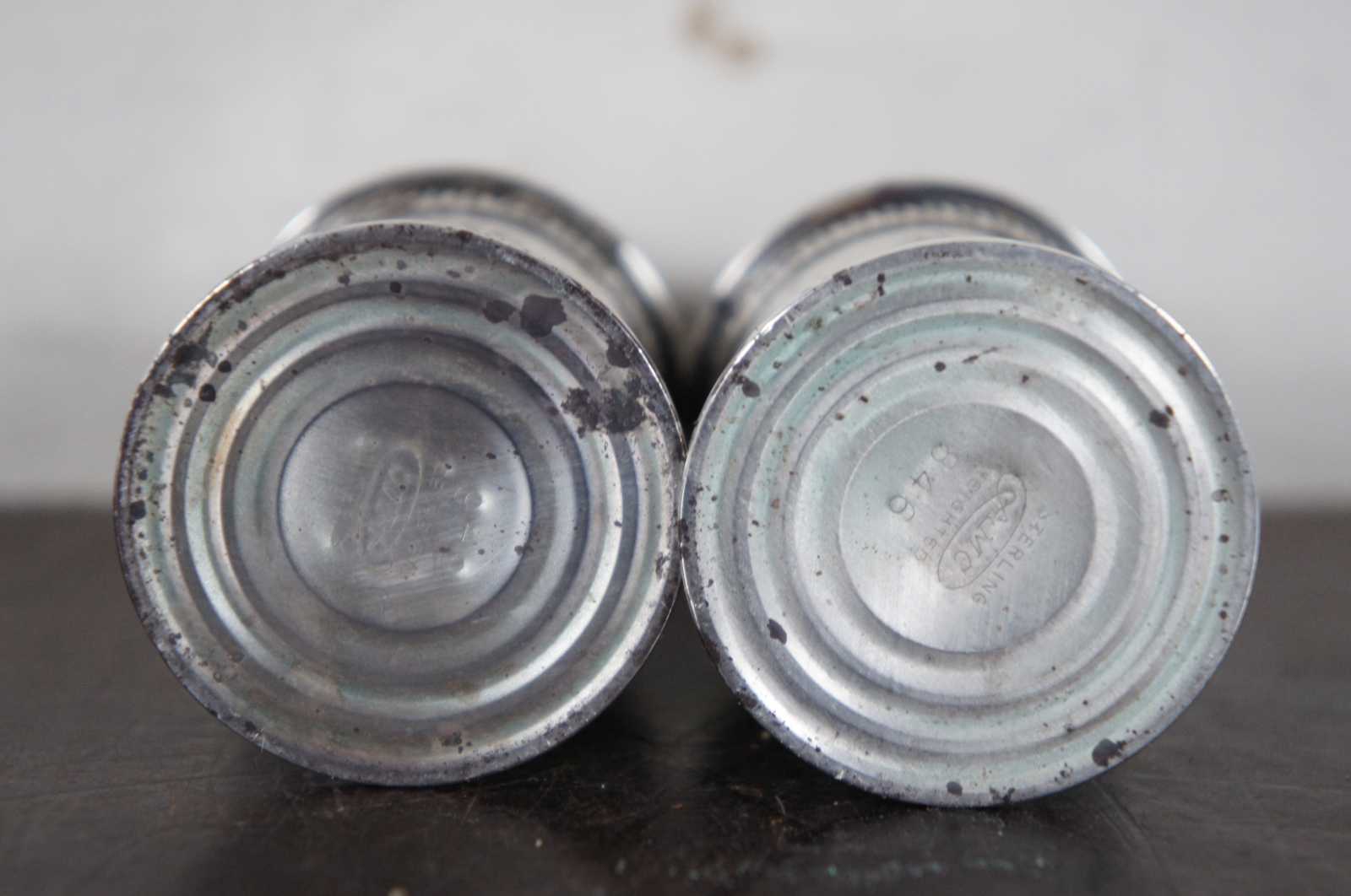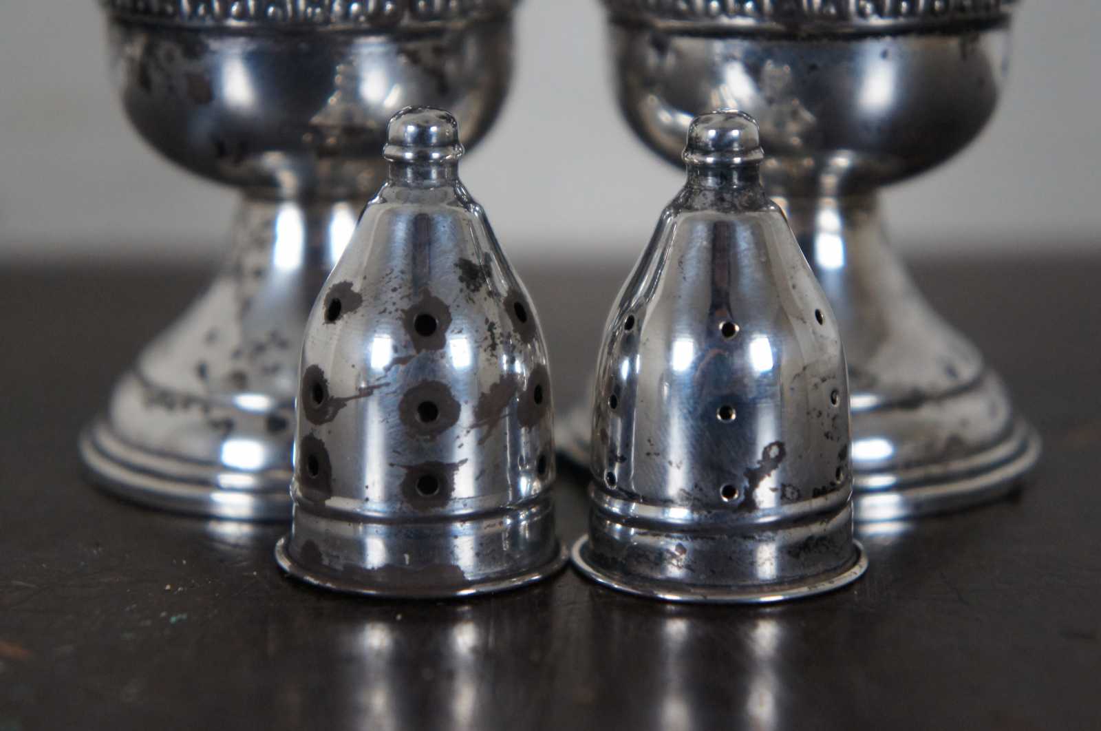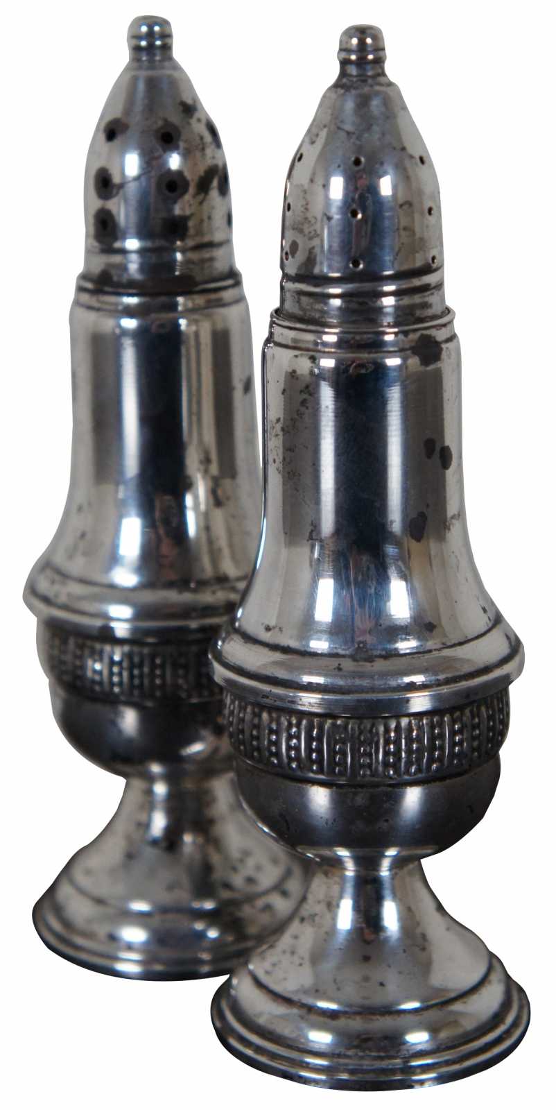 Vintage AMC sterling silver 925 trophy urn shaped weighted salt and pepper shakers with glass interiors.