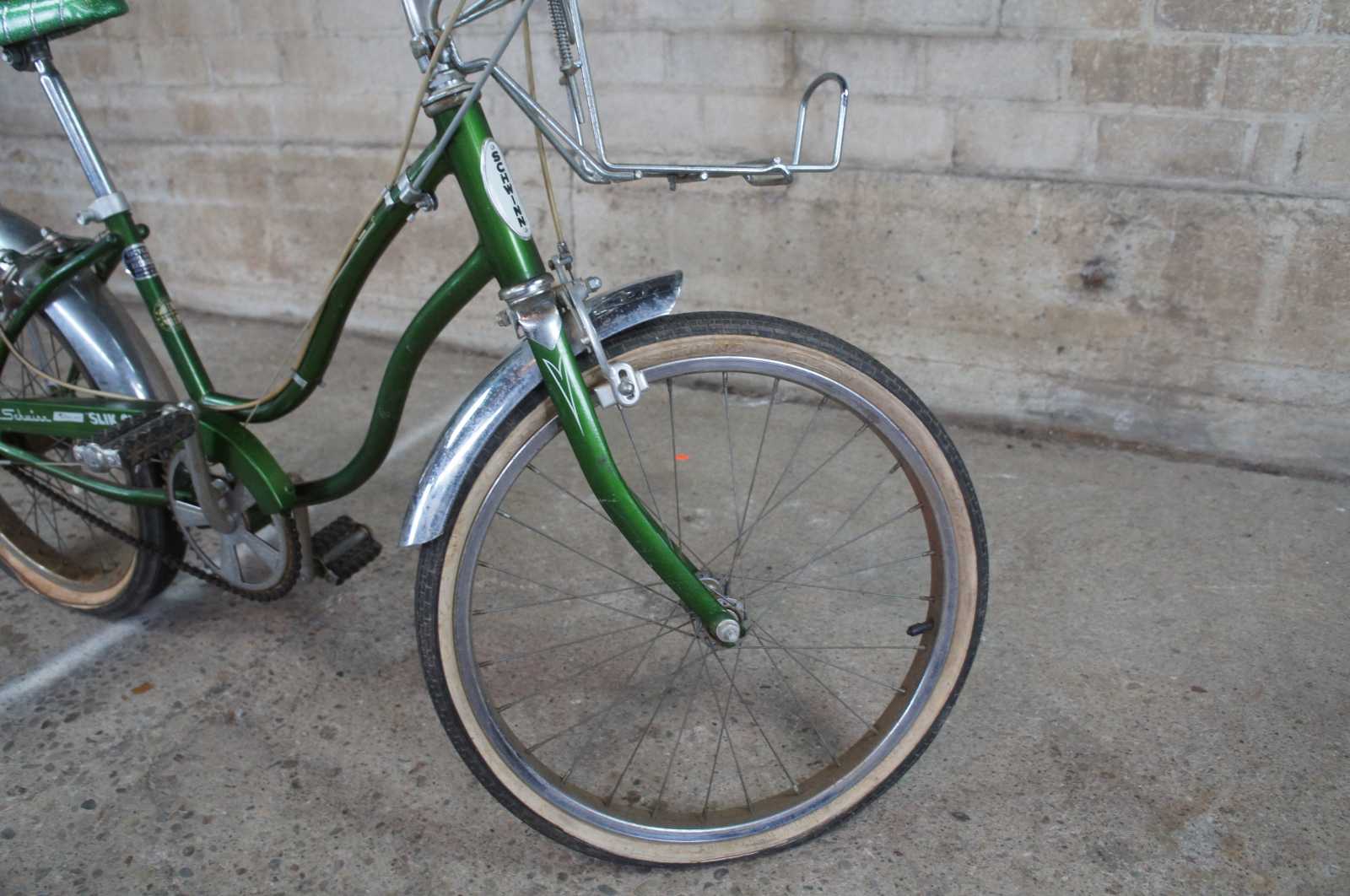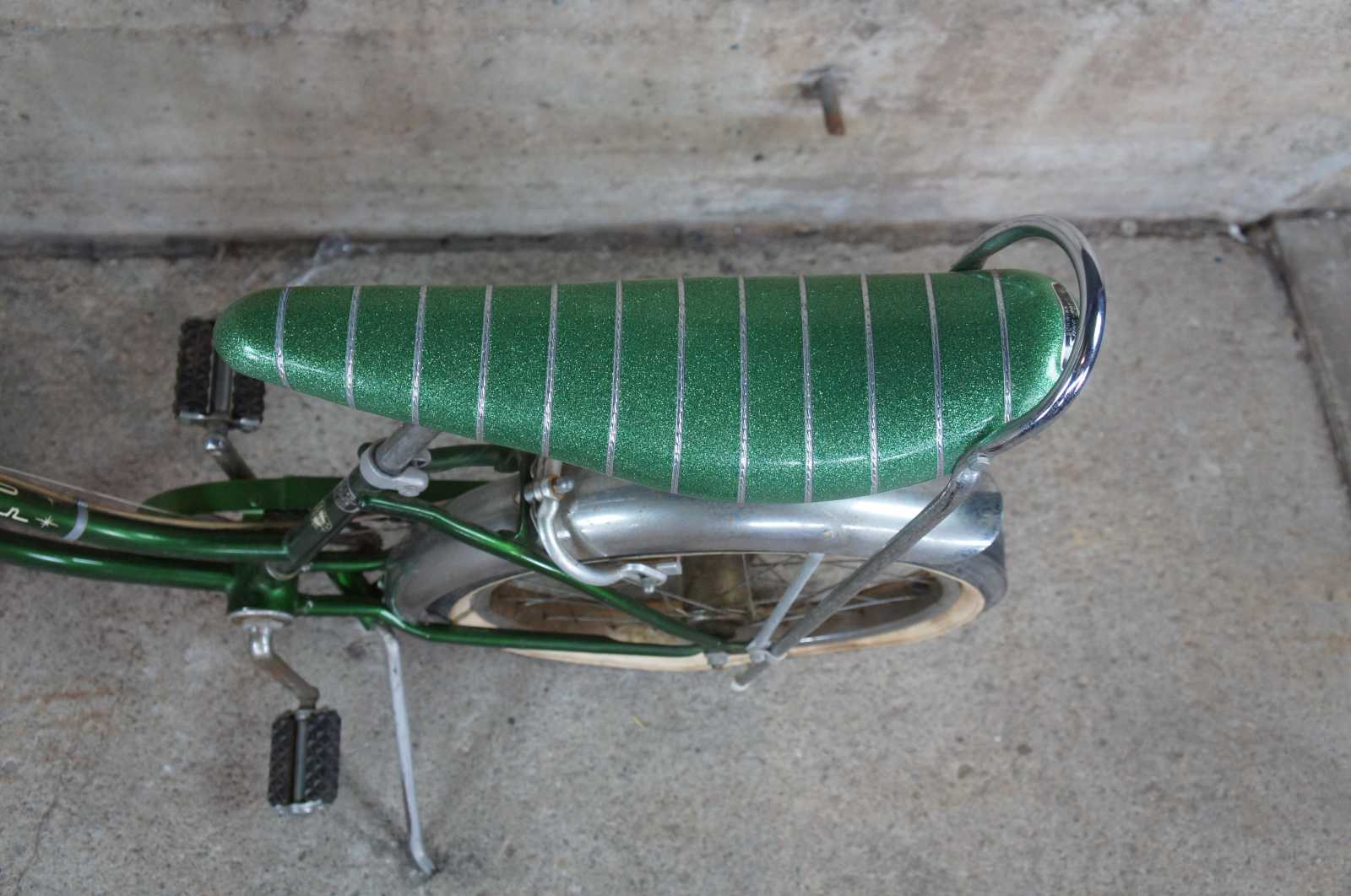 1970s Schwinn Sting Ray Slik Chick 3 Speed Girls Collectible Bicycle. Finished in campus green with banana seat and carrier.