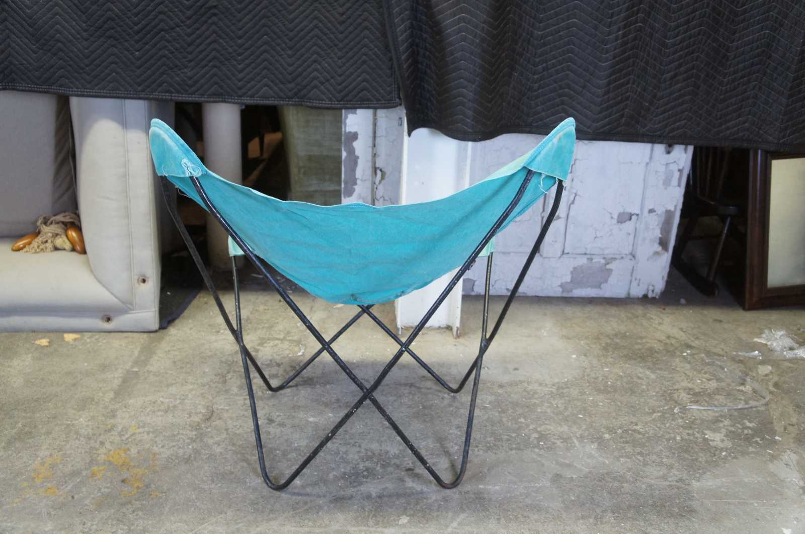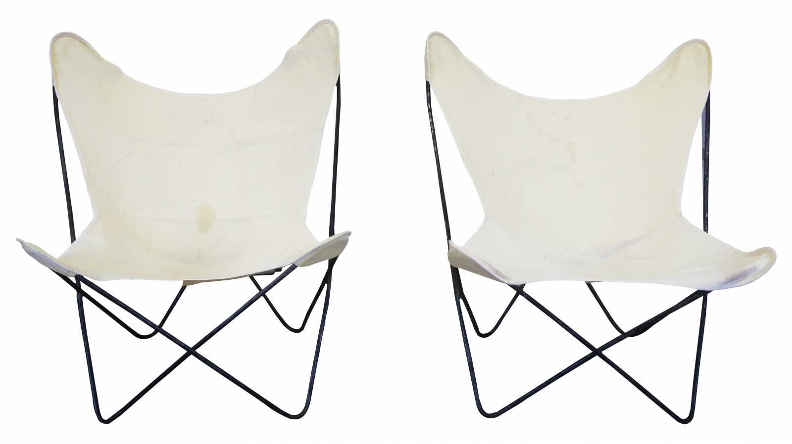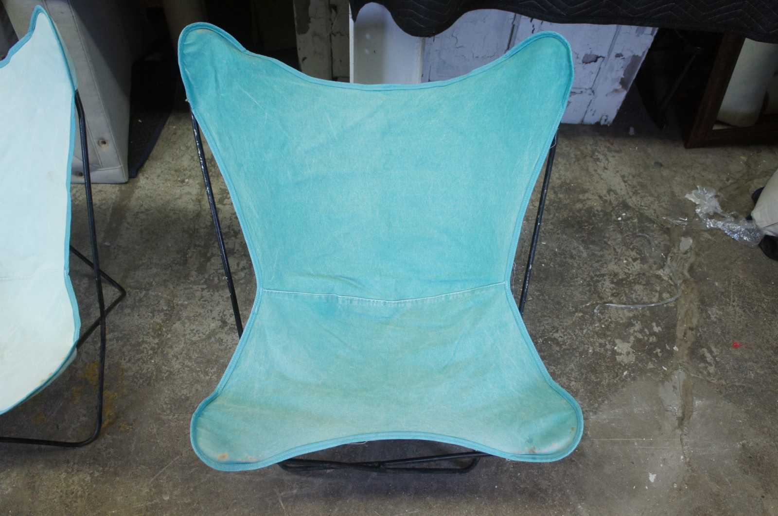 Mid 20th century Iron butterfly chairs attributed to Knoll. Features 2 sets of Algoma seat covers.