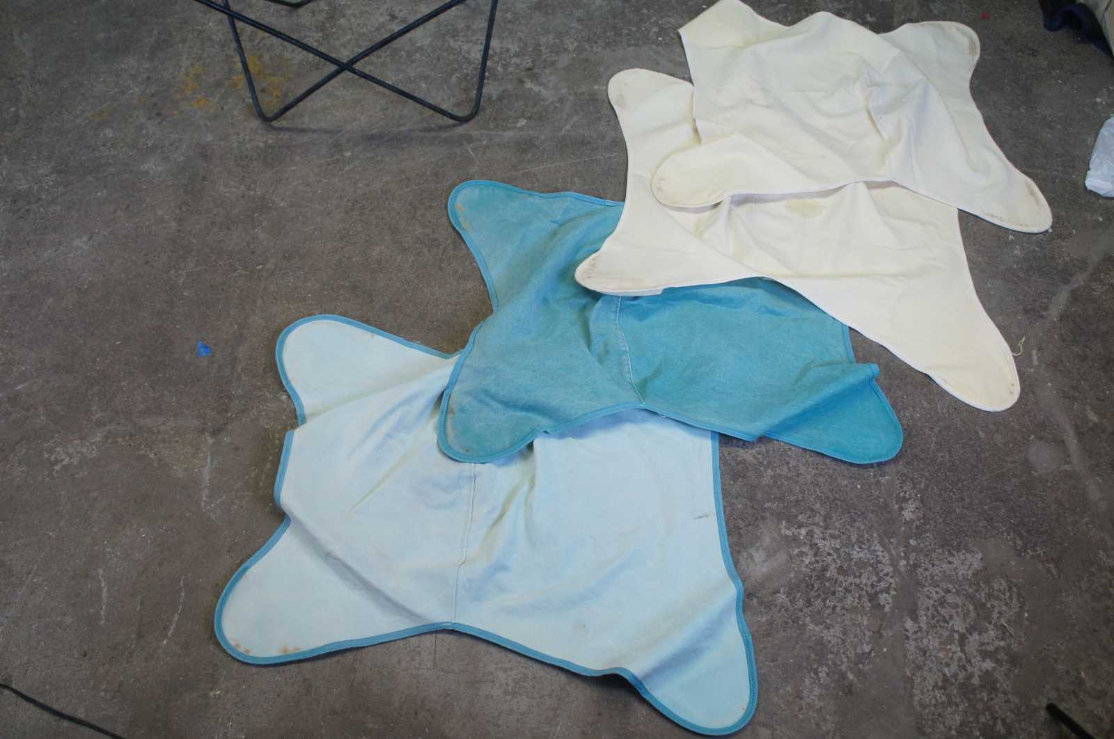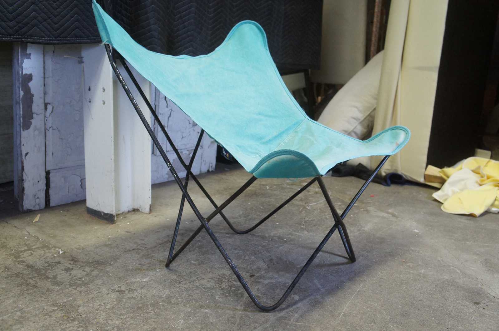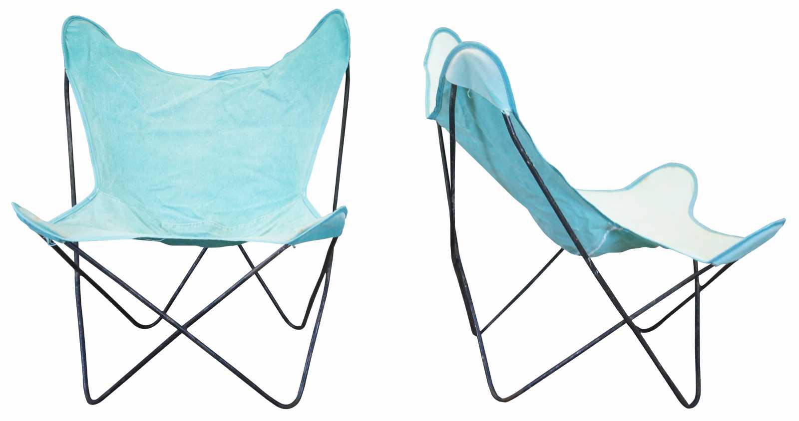 Mid 20th century Iron butterfly chairs attributed to Knoll. Features 2 sets of Algoma seat covers.