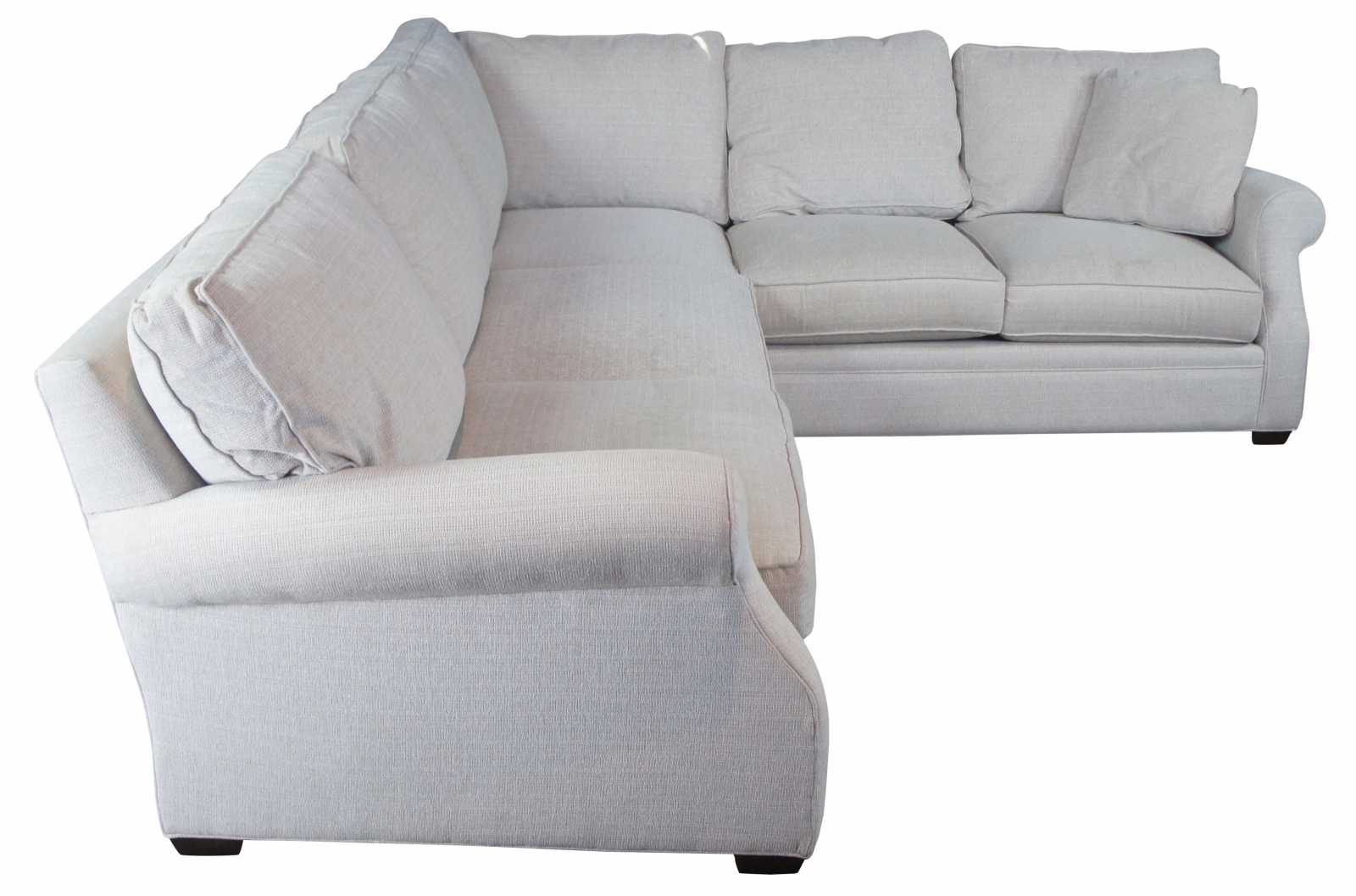 Pure comfort wrapped in classic design - This Sectional fits living rooms both spacious and small. This transitional yet traditional style features plush, padded cushions, rolled arms, and an abundance of toss pillows—resulting in a versatile foundation for your seating area. Hand-built by dedicated upholstery artisans in North Carolina, these pieces are durably constructed with sustainably sourced hardwoods. Deep and cozy cushions provide long-lasting support and a “sink into” feel. All of this is expertly fitted in our designer-inspired fabric selected to complement your décor.