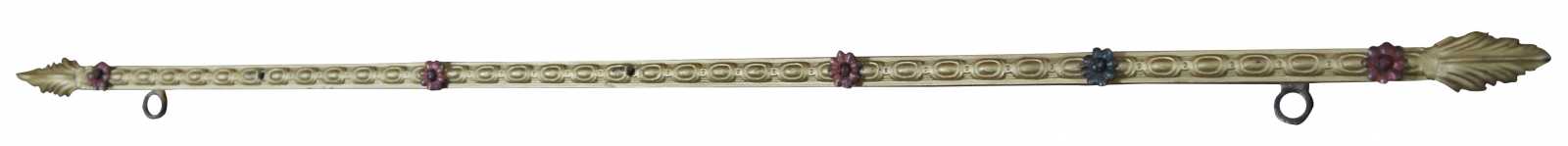 Antique Victorian brass rod accented with flowers and two rings for supporting a wall hanging such as a tapestry.