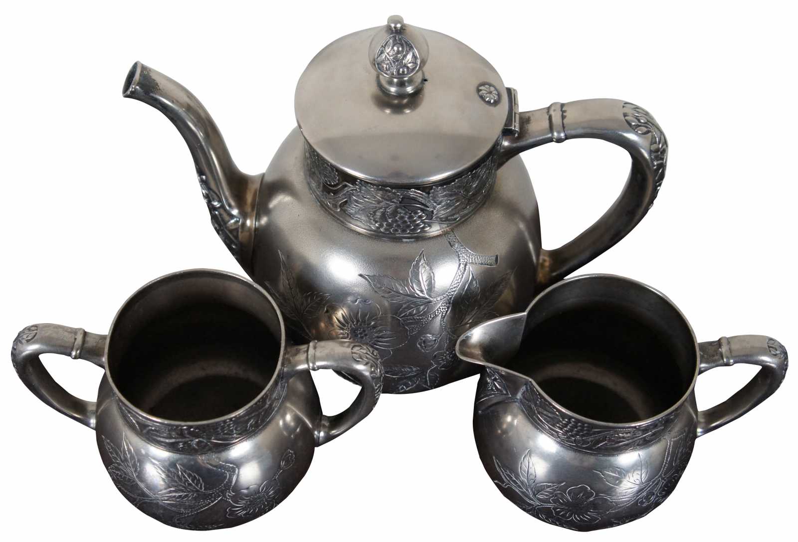 Antique Victorian Aesthetic Pairpoint Quadruple Plated Tea Set Cream Sugar Pot