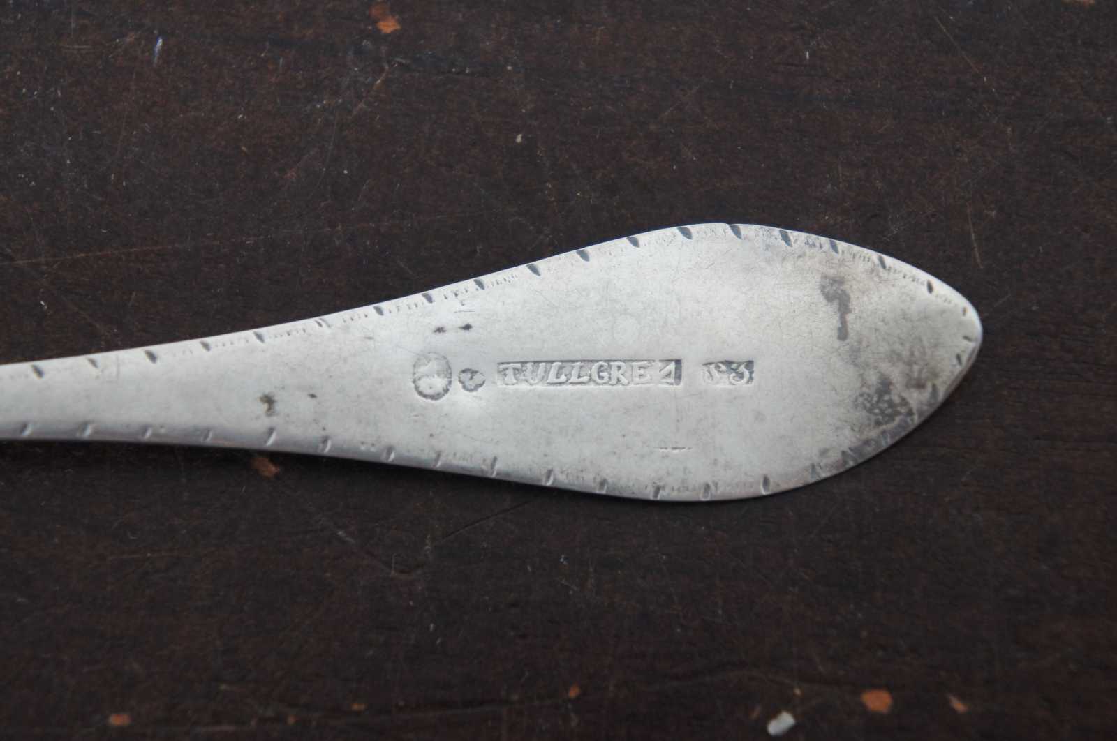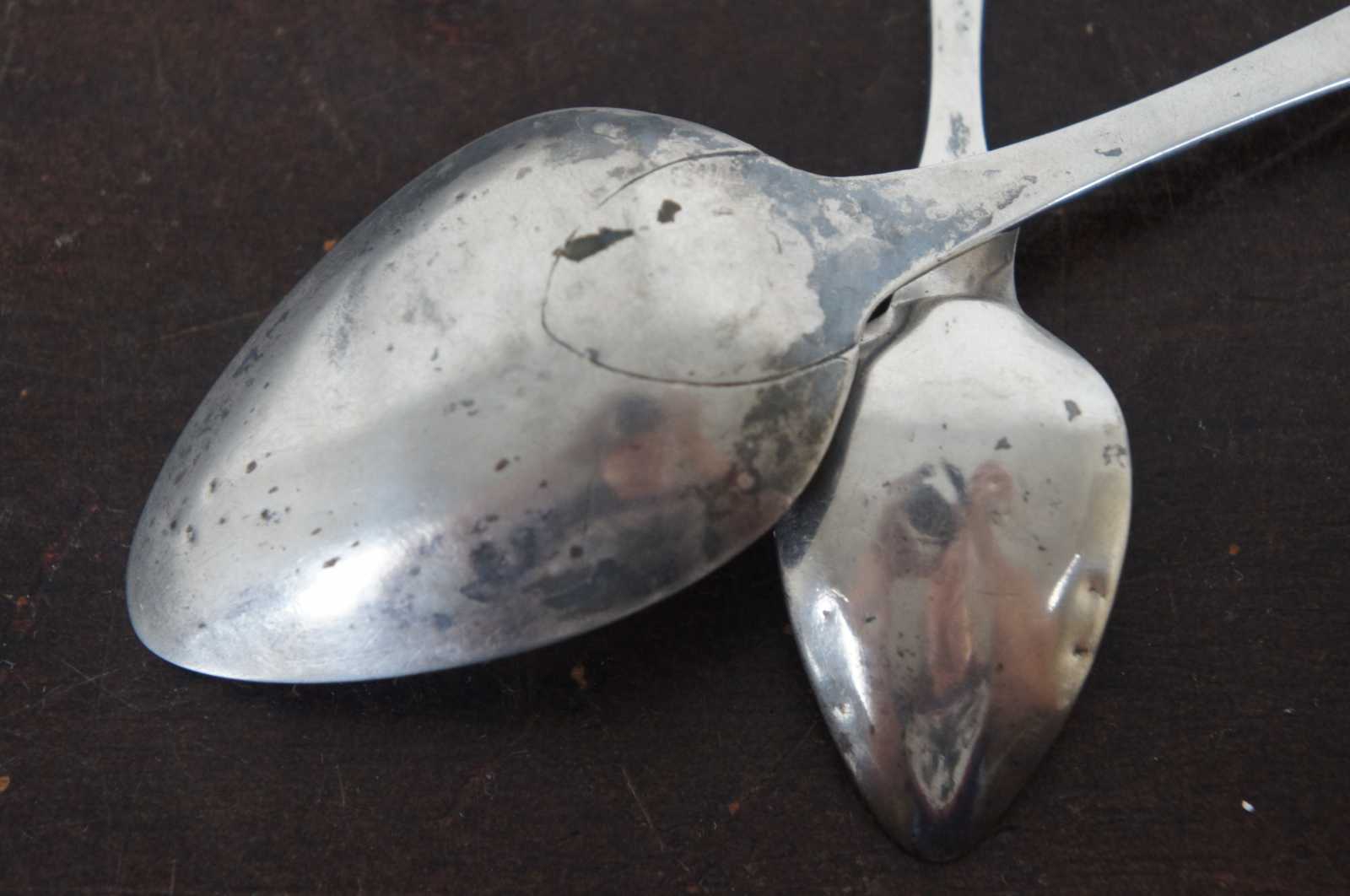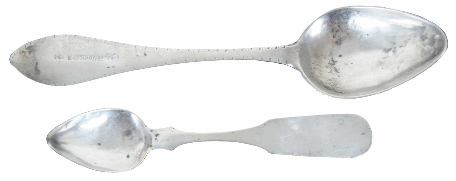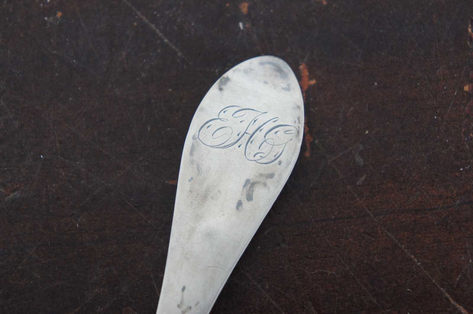 Pair of antique coin silver spoons one monogrammed “EHG” and marked Tullgren, the other marked J. Draper.