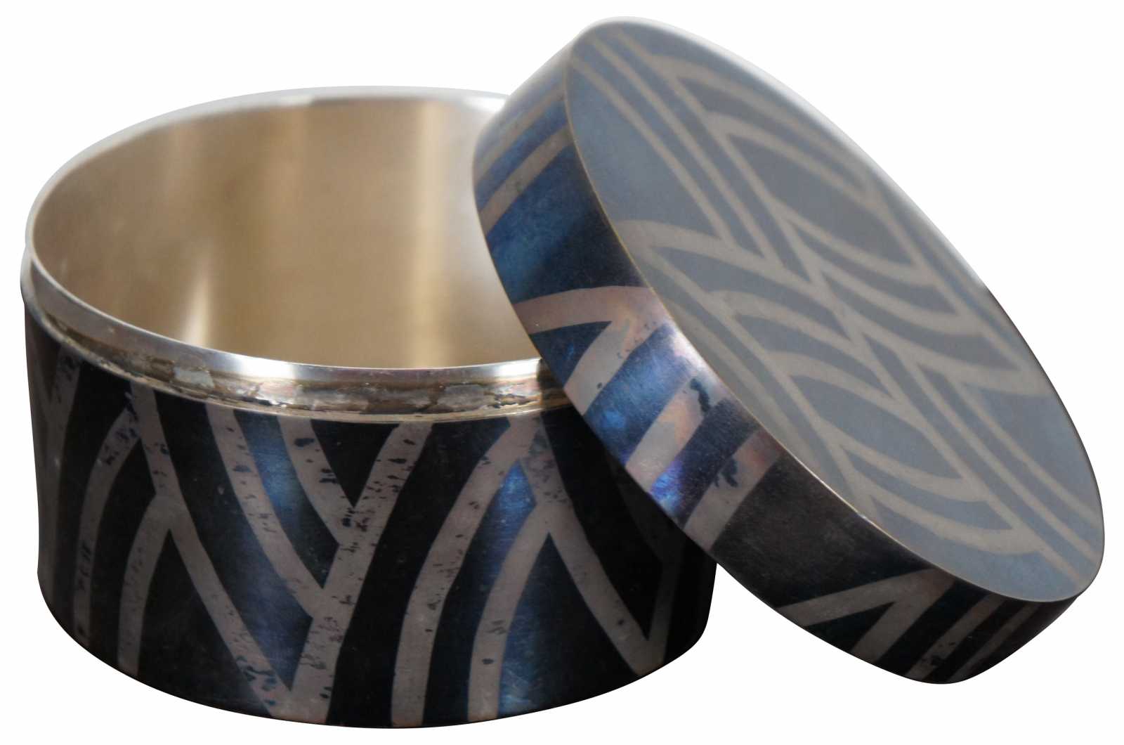 Vintage art deco styled silver and grey metal canister or trinket box sold by Richard Plumer.