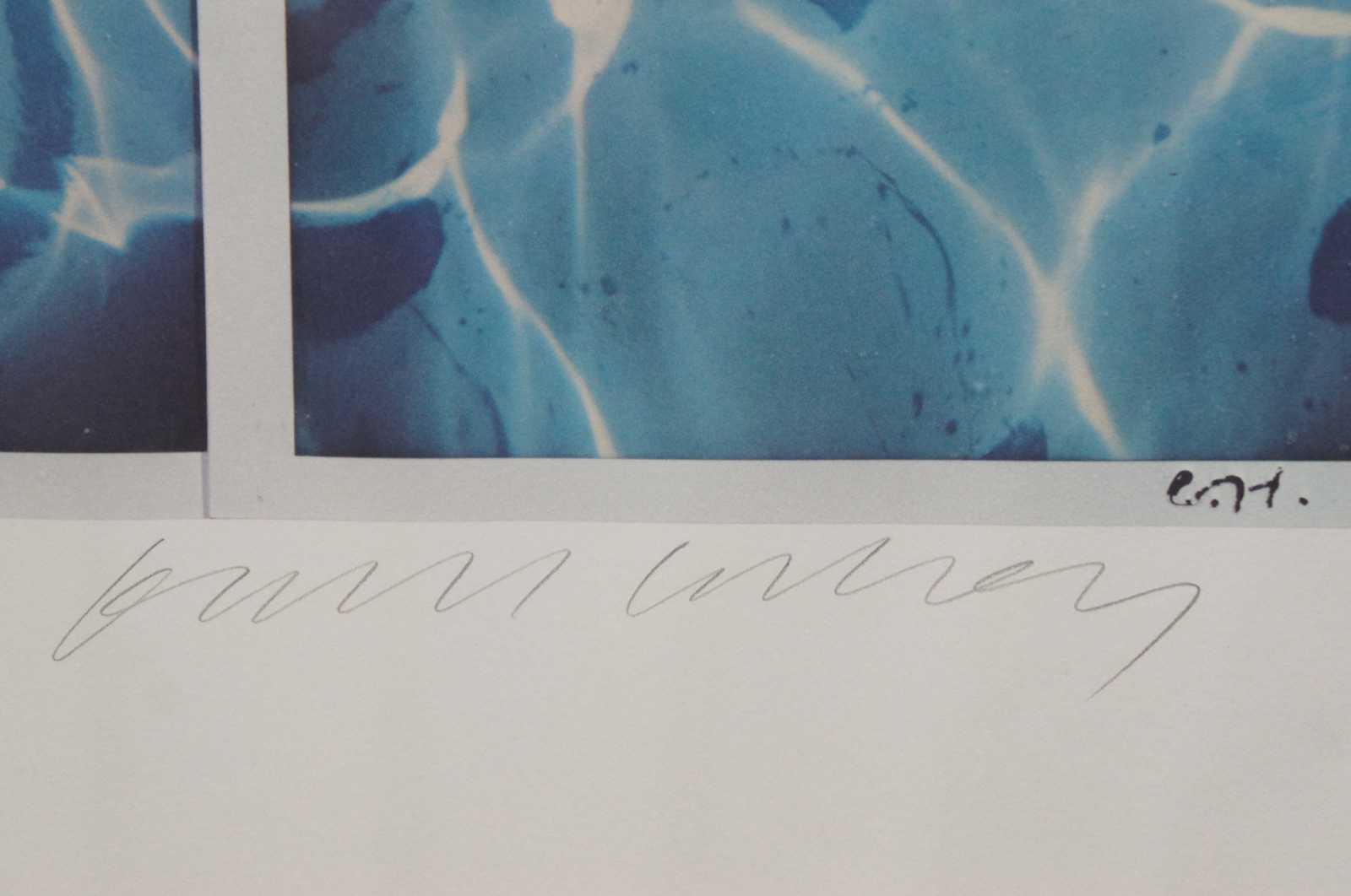 Hockney has owned a residence and studio in Bridlington and London, as well as two residences in California, where he has lived intermittently since 1964: one in the Hollywood Hills, one in Malibu, and an office and archives on Santa Monica Boulevard in West Hollywood, California. In 1982, the Olympic Committee commissioned 15 artists to create posters for the 1984 Games in Los Angeles. Hockney designed this offset lithograph depicting Olympic swimming.”