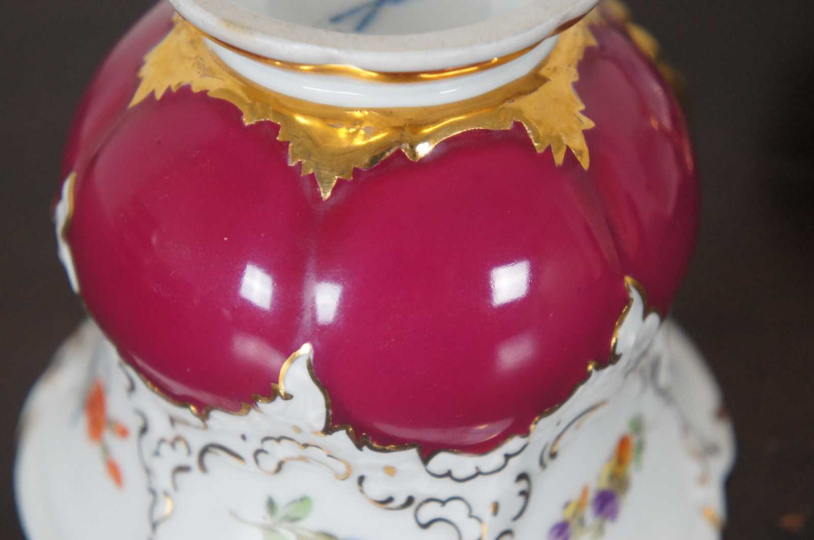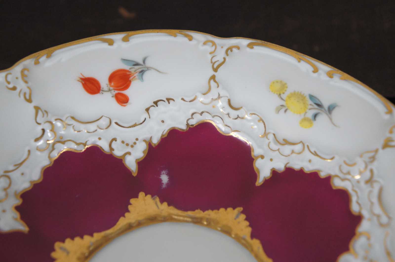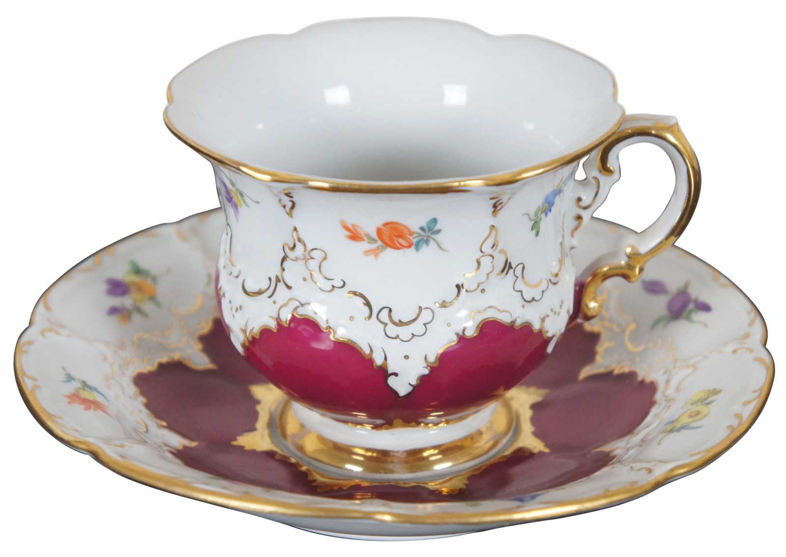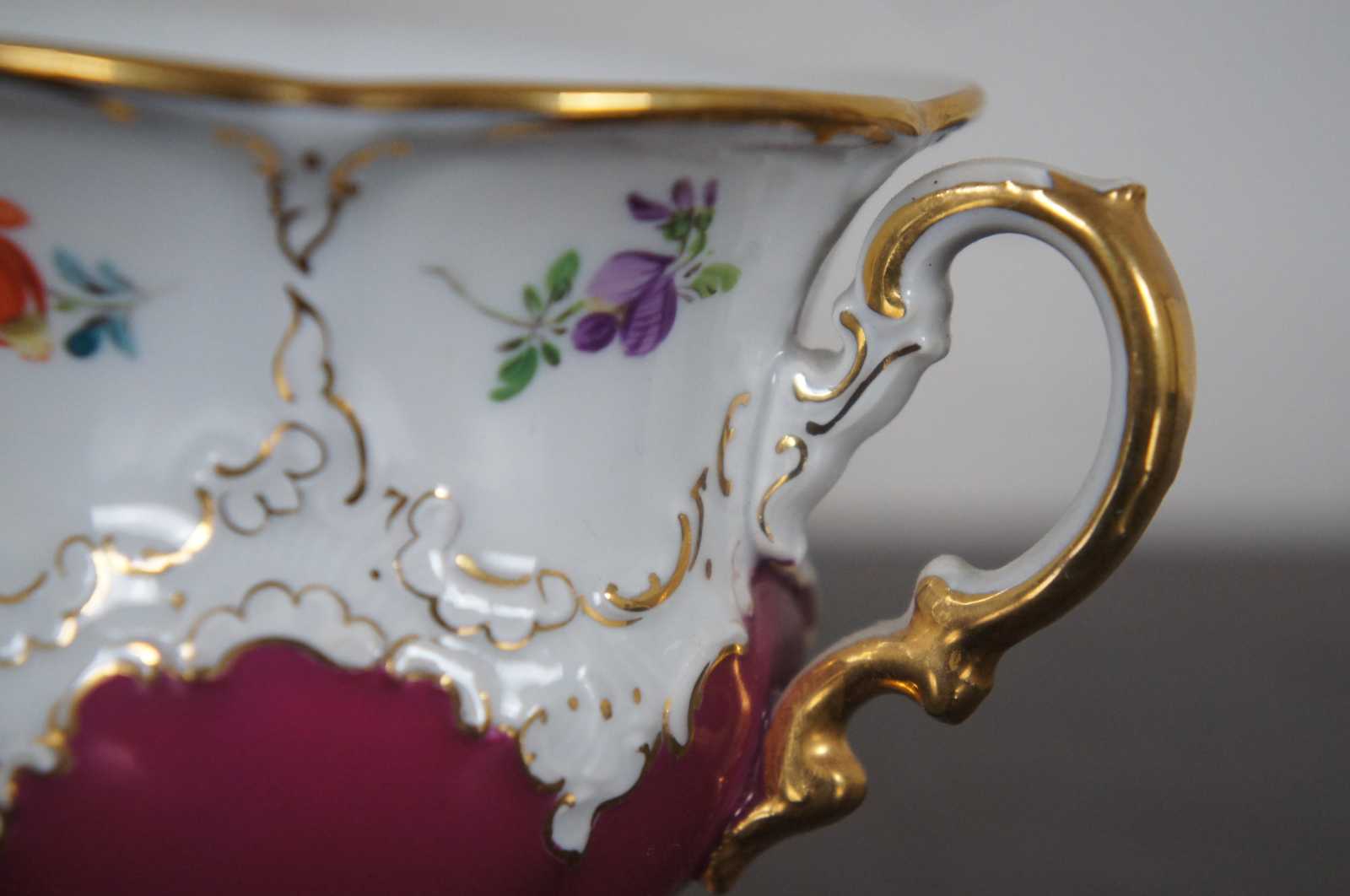 Twelve piece set of Antique Meissen china. Porcelain, blue swords marks 1st and 2nd choice, form number B-154, B-form purple with scattered flowers