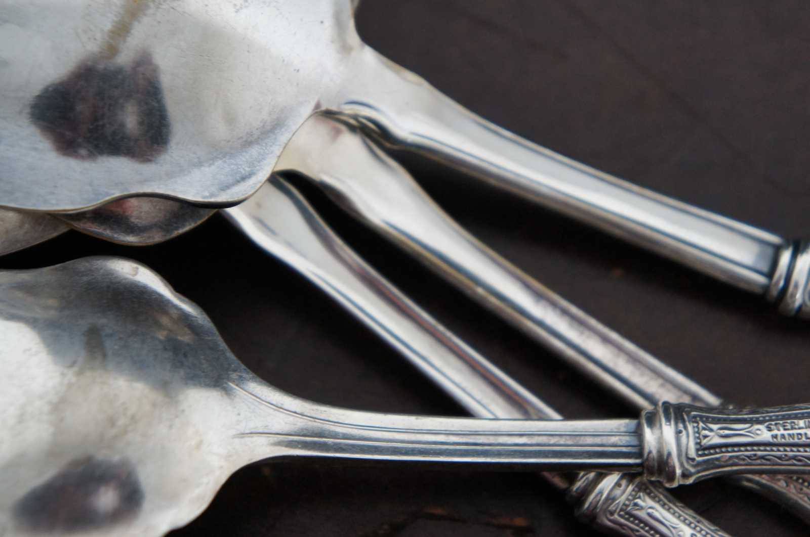 Large Fork - 2.25” x 9” / 75.8 g / Smaller Fork - 1.375” x 8.25” / 62.8 g / Oval Spoon - 2.625” x 9.25” / 75.4 g / Round Spoon - 2.875” x 8.5” / 69.3 g (Length x Width/Weight)