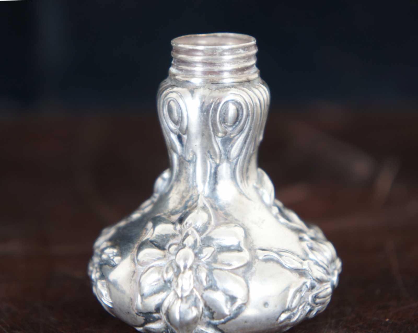 Single antique repousse sterling silver Victorian floral salt shaker.