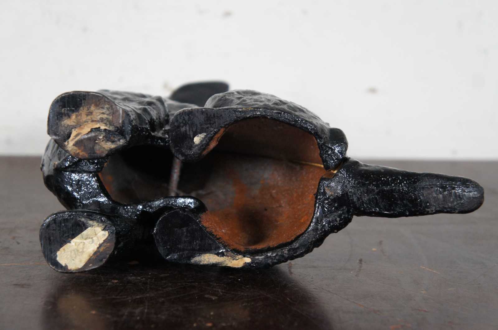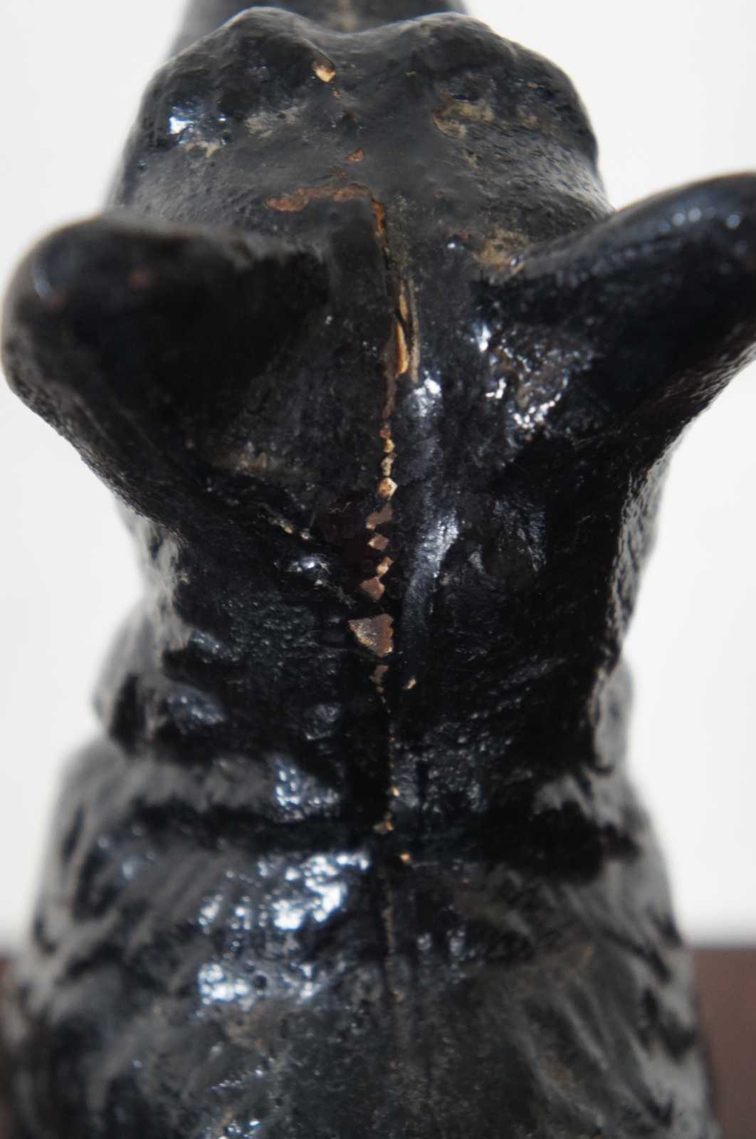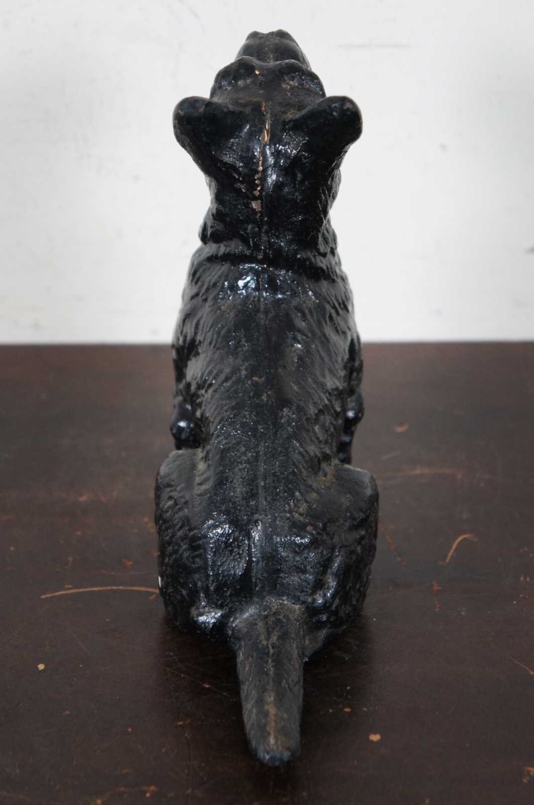 Antique cast iron door stop in the shape of a seated Scottish terrier.