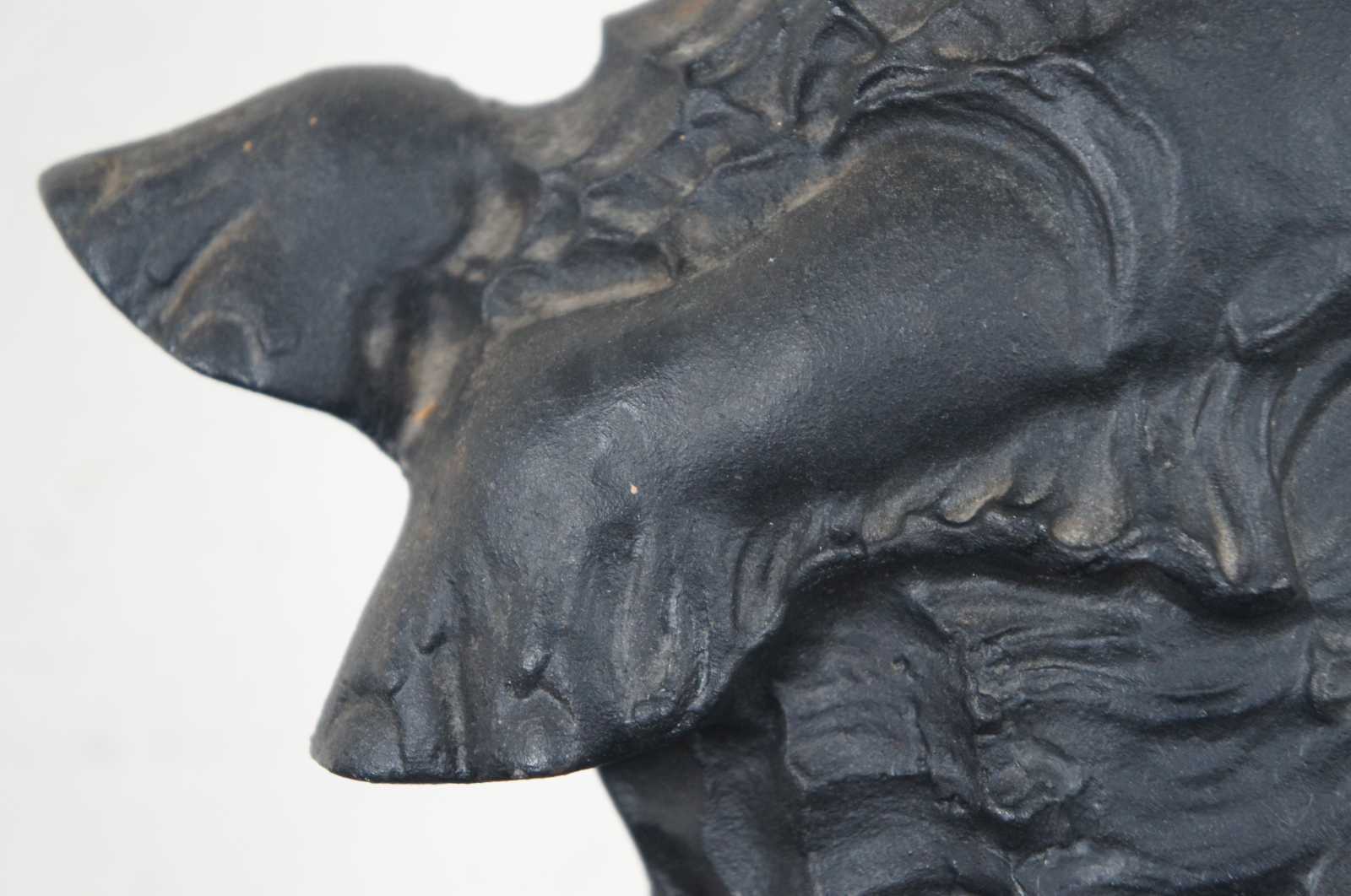 Vintage 1960s cast iron door stop in the shape of a Scottish terrier or Scotty dog begging or sitting pretty, marked JM 68 on the reverse.