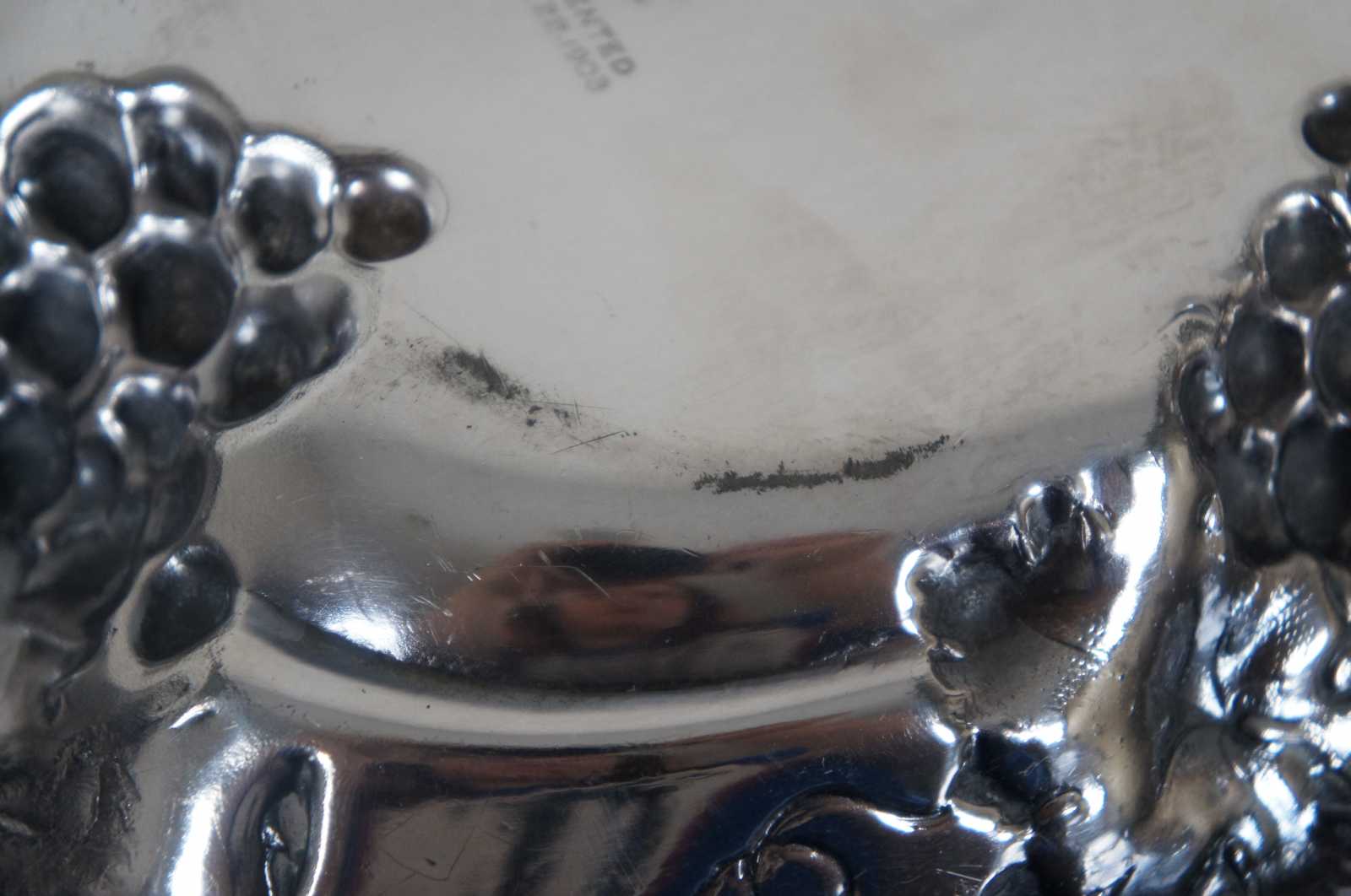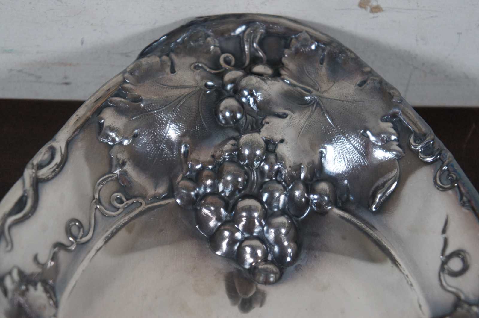 Antique Homan Manufacturing Company quadruple silver plate oval centerpiece serving veggie bread plate decorated with repousse molded grapes and leaves.