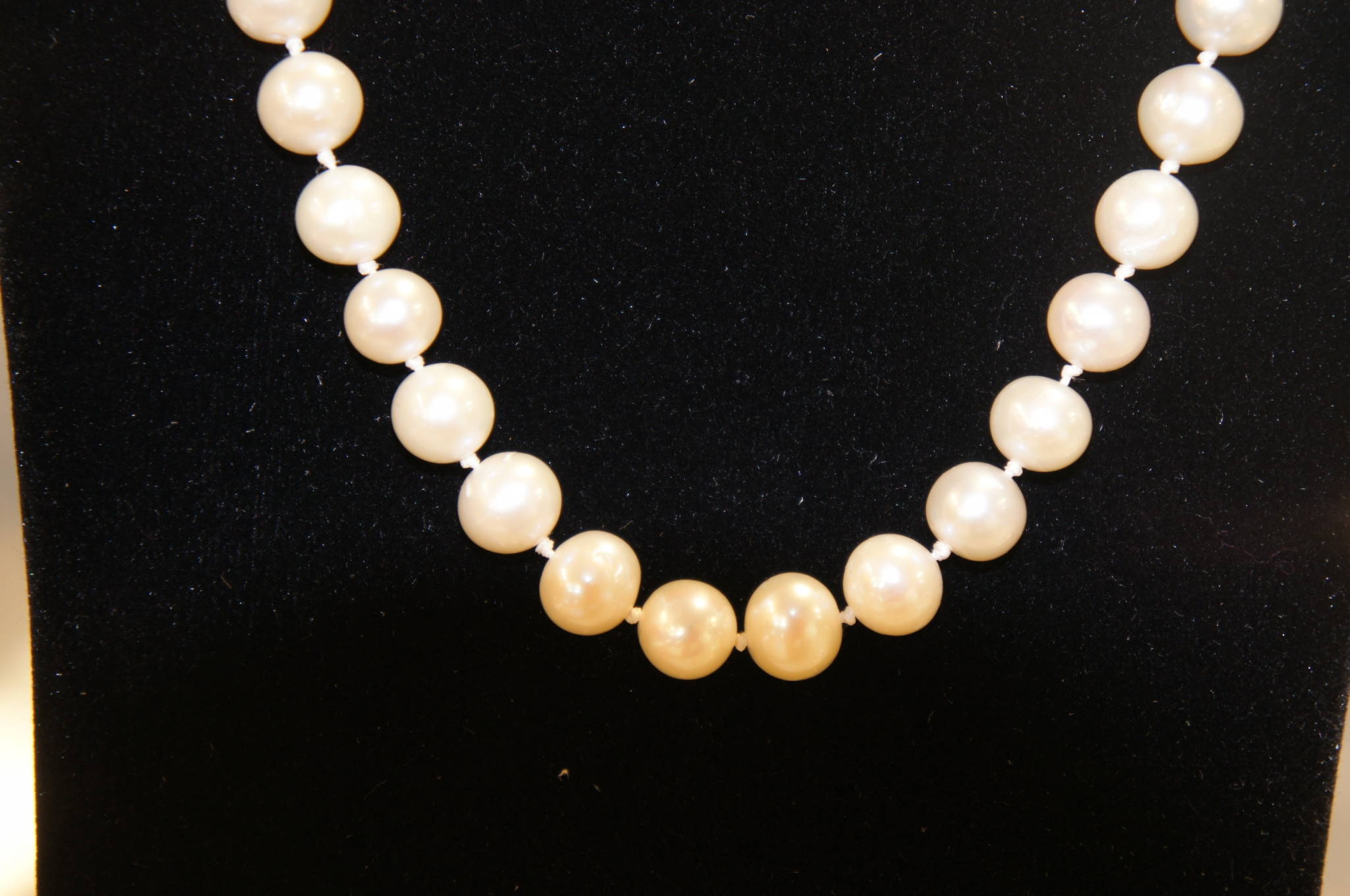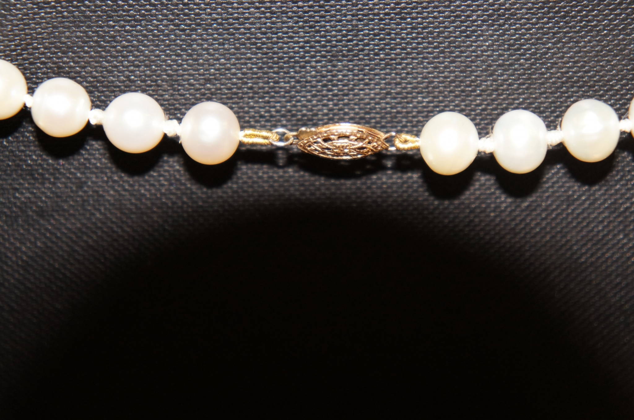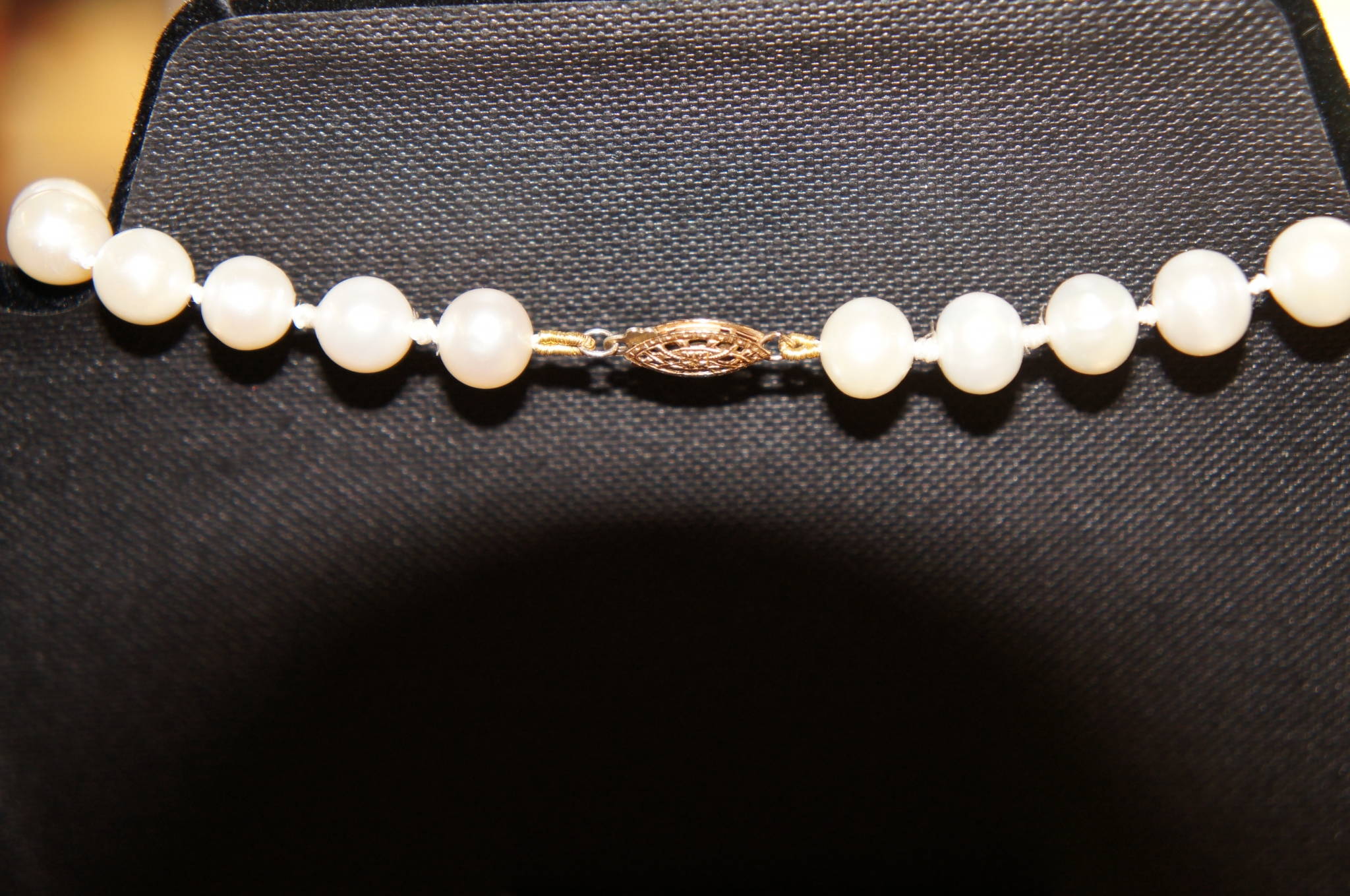 These exquisite white pearls come complete with a beautifully engineered 14/20 gold filled clasp that will assure these pearls never fall off! The pearls measure approx. 18'' inches and are in excellent condition. These would go well as a gift or on your neck.