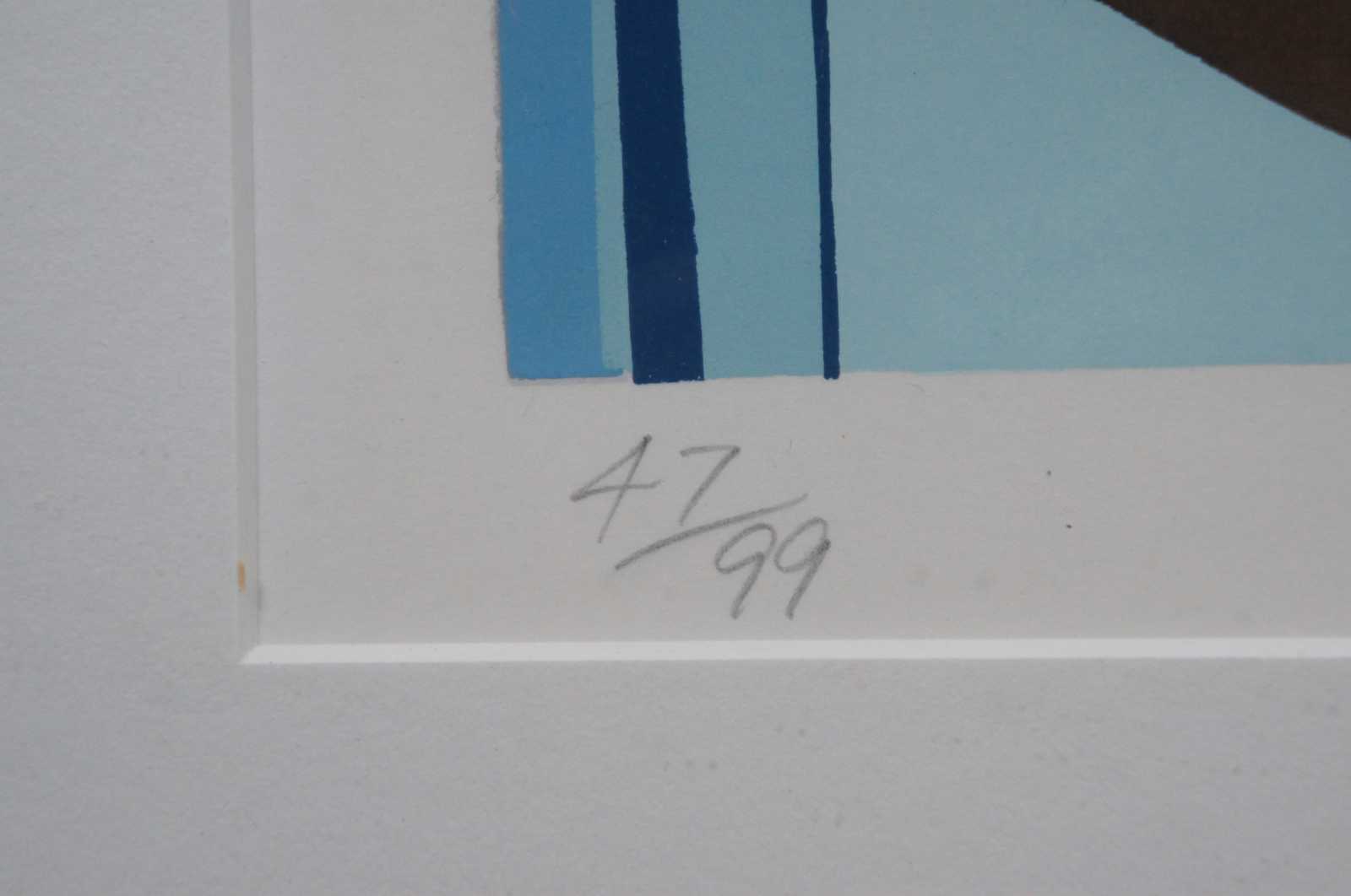 A rare departure from his most common theme of racing cars. “Randy Owens was born in Baltimore, Maryland on July 24, 1955 and grew up in Vienna, Virginia. Randy majored in fine art at Northern Virginia Community College and shortly pursued a career as a tennis professional. Randy was drawn to the vibrant colors, clean form and crisp edges of serigraphy (silkscreen printmaking) and after being introduced to auto racing in 1978, Randy began making serigraphs of motor racing subjects in his own unique style.
