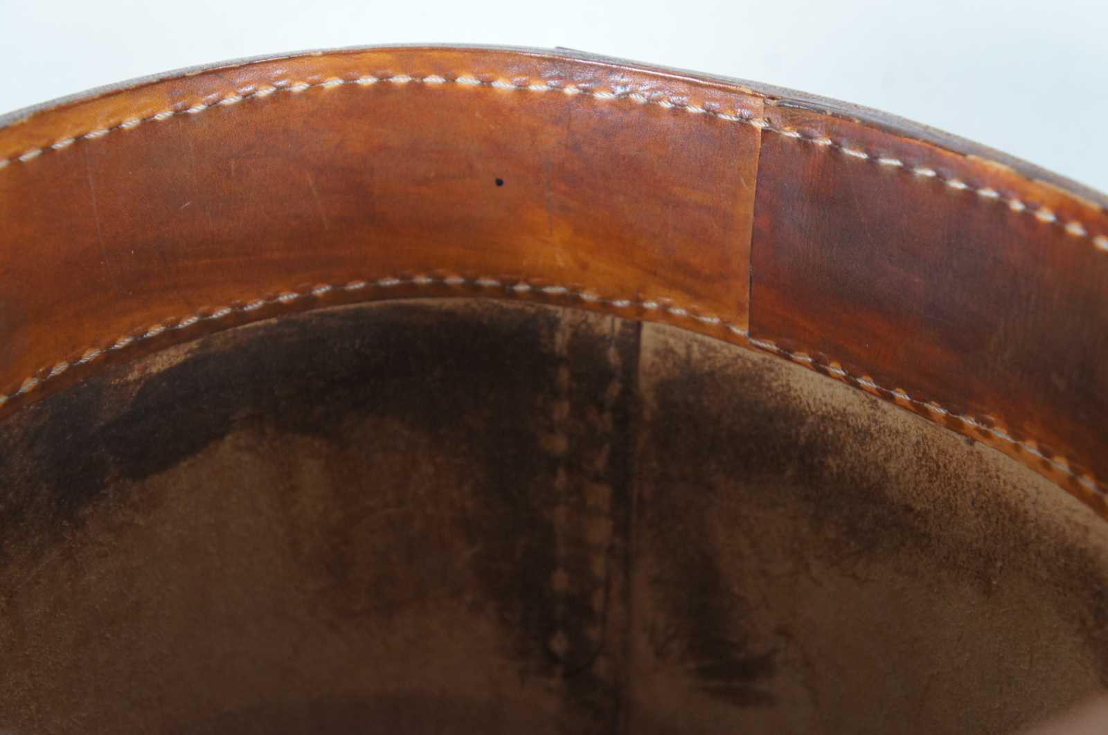 Vintage cylindrical brown leather waste basket, made in Poland.