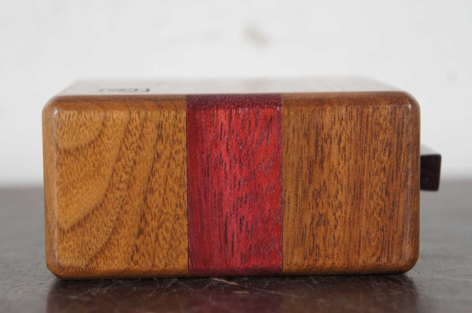 Small vintage two tone wooden Chinese puzzle box with space for a small note or trinket.