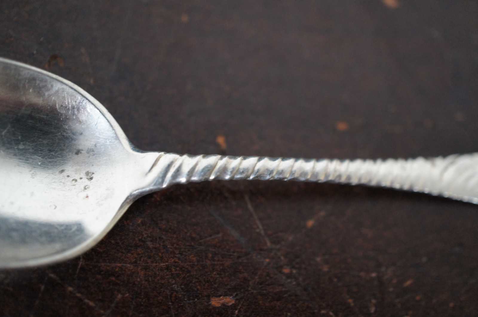 Antique late 19th century Gorham sterling silver tea spoon with twisted tandle, engraved at the end with the name Fannie.