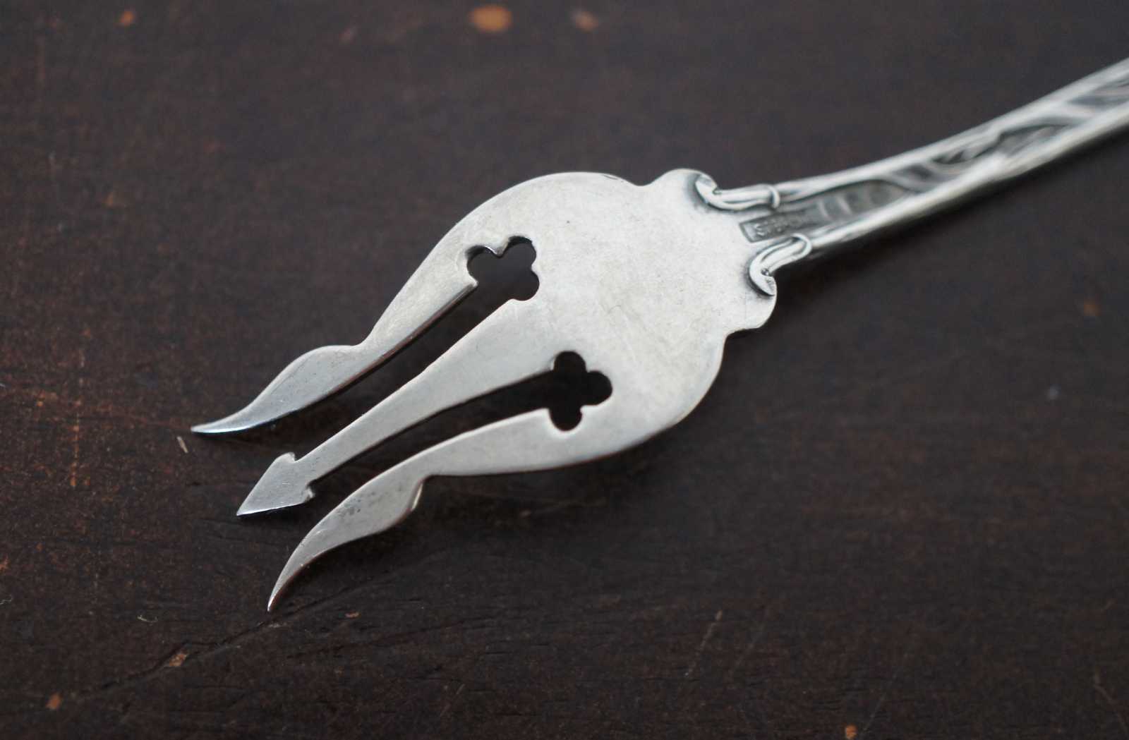 Antique sterling silver cocktail fork by Watson in the Lily pattern. The origin of the firm traces back to 1874 when was formed in Attleboro, MA, the Cobb, Gould & Co. The founders were Clarence L. Watson, Fred Newell, Charles Cobb, Samuel Gould and W.A. Battey.