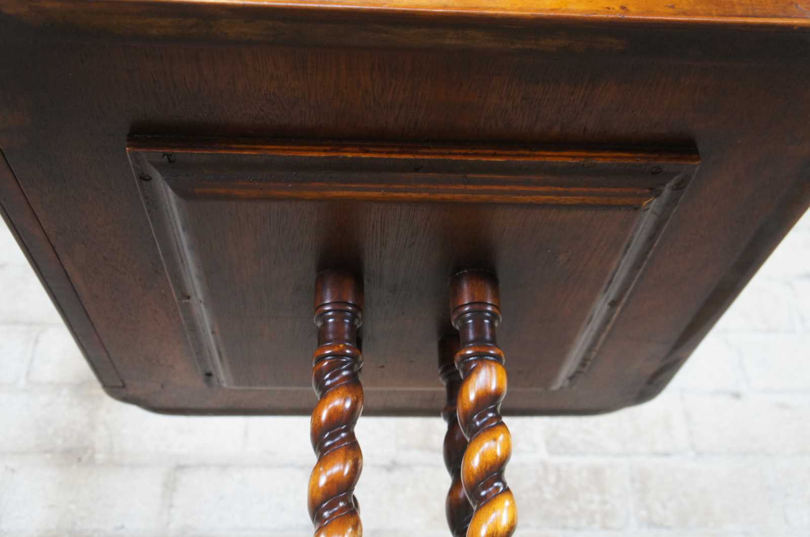 Vintage Theodore Alexander chess, checkers or game table. Made of olive burl featuring a barley twisted central pedestal and two drawers for piece storage.