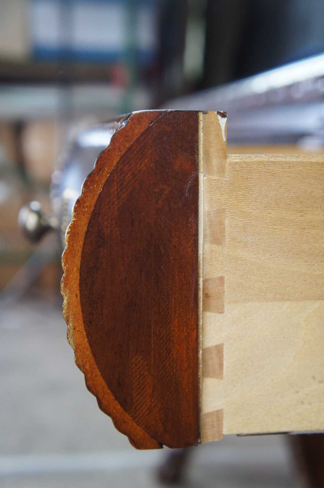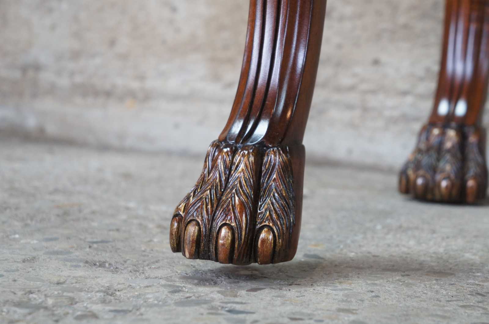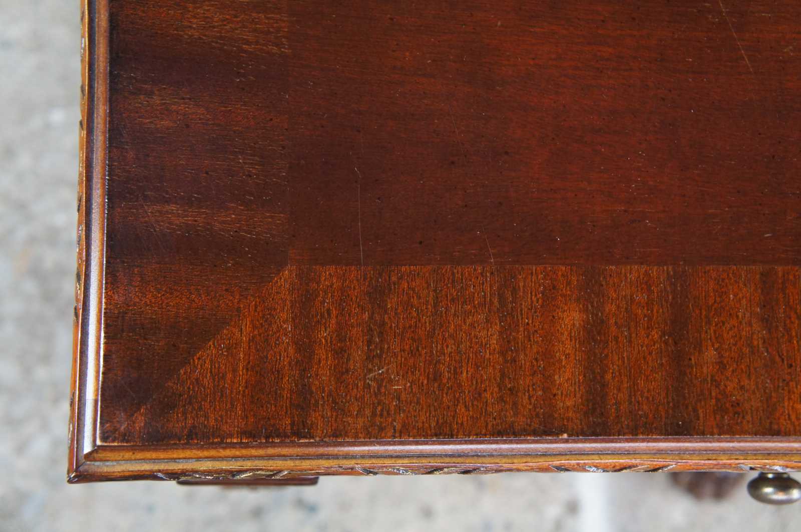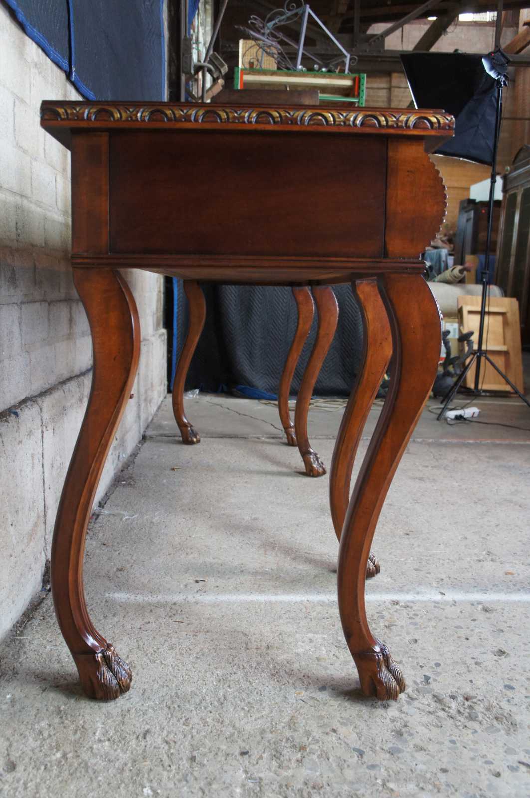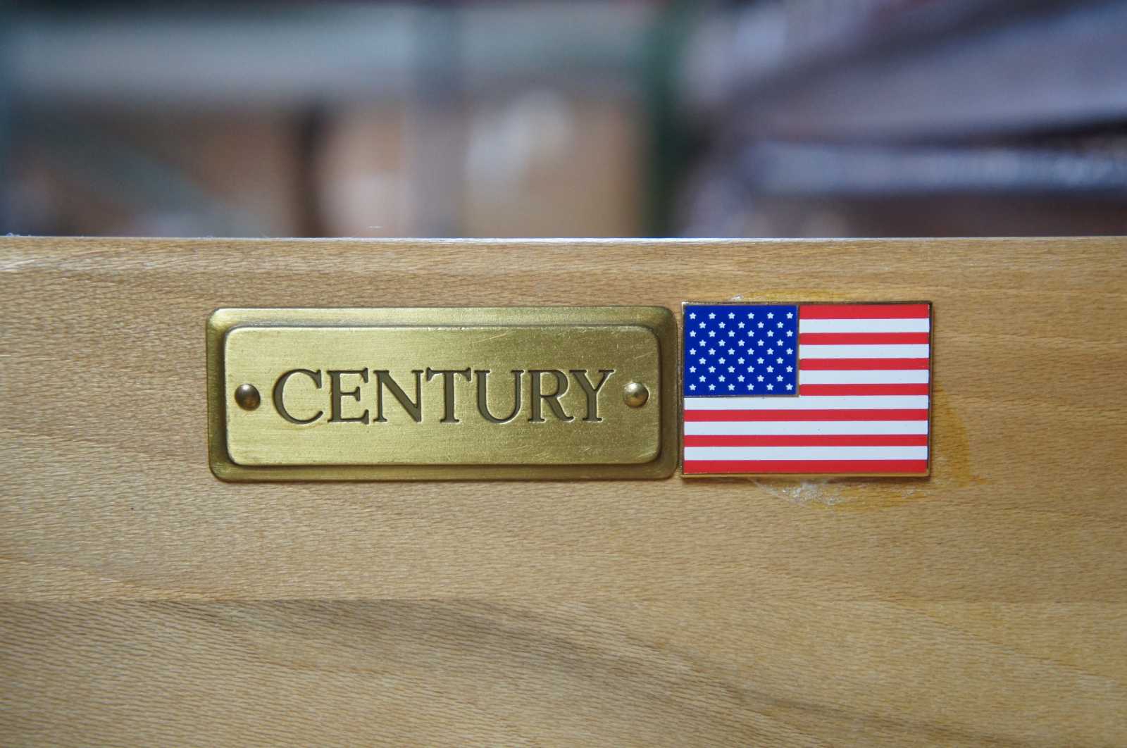 Century Furniture Chippendale Sideboard. Features a rectangular form with breakfront over 3 drawers and 6 swooping cabriole legs leading to paw feet. Includes a brushed gilt finish, gadrooning, fluting, carved crests and brass hardware. Great for use as a server, console, credenza, sofa table, dry bar or server.