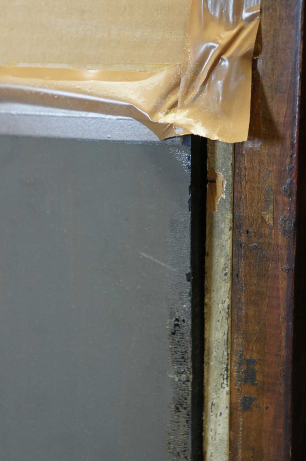 Good Overall - Gentle wear to frame/some cracks in giltwood; mirror loose in frame; print darkened/discolored; minor spots/silver loss to mirror; see pictures