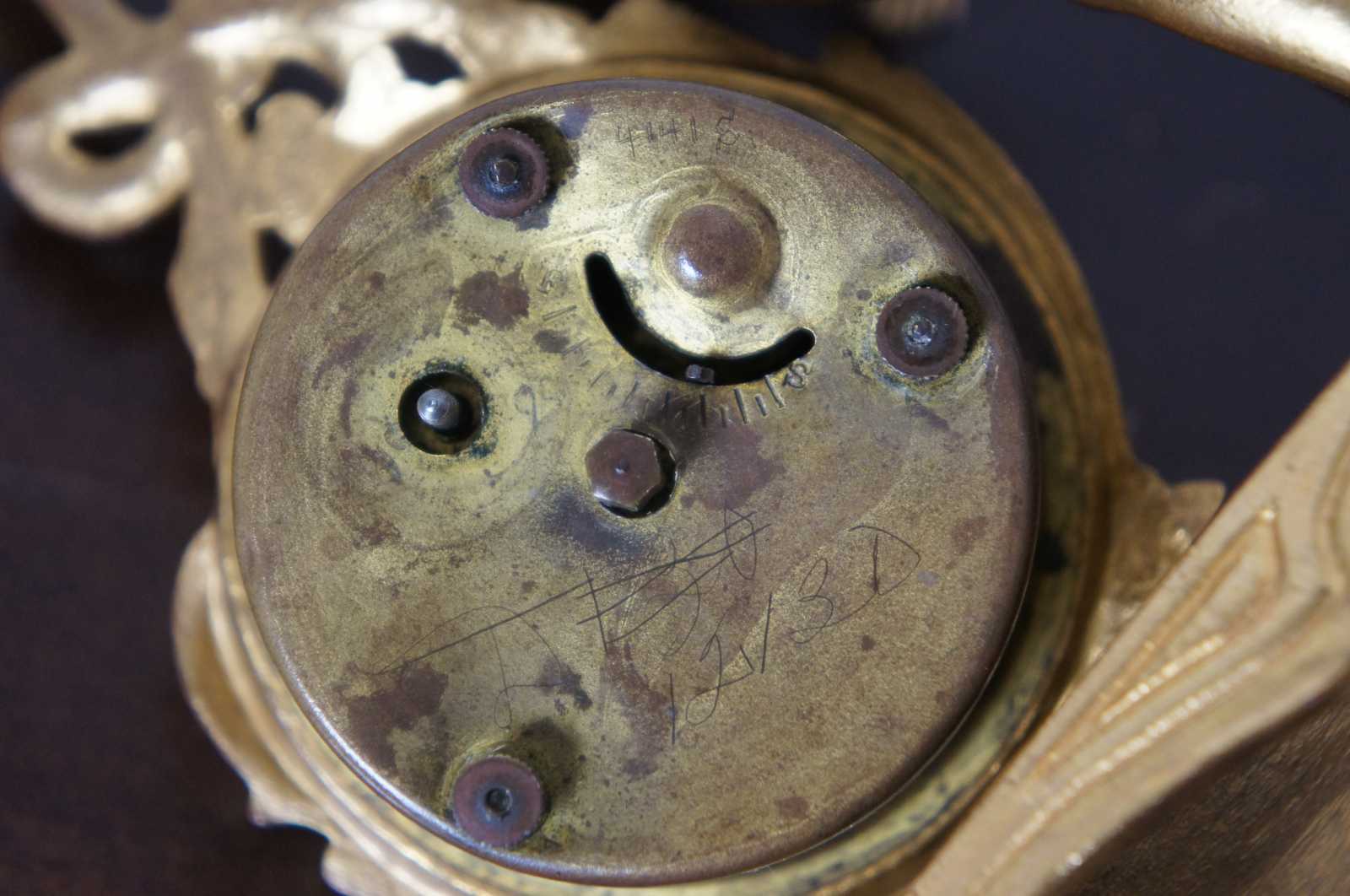 Antique art nouveau gilt metal cherub tabletop clock by the New Haven Clock Company.