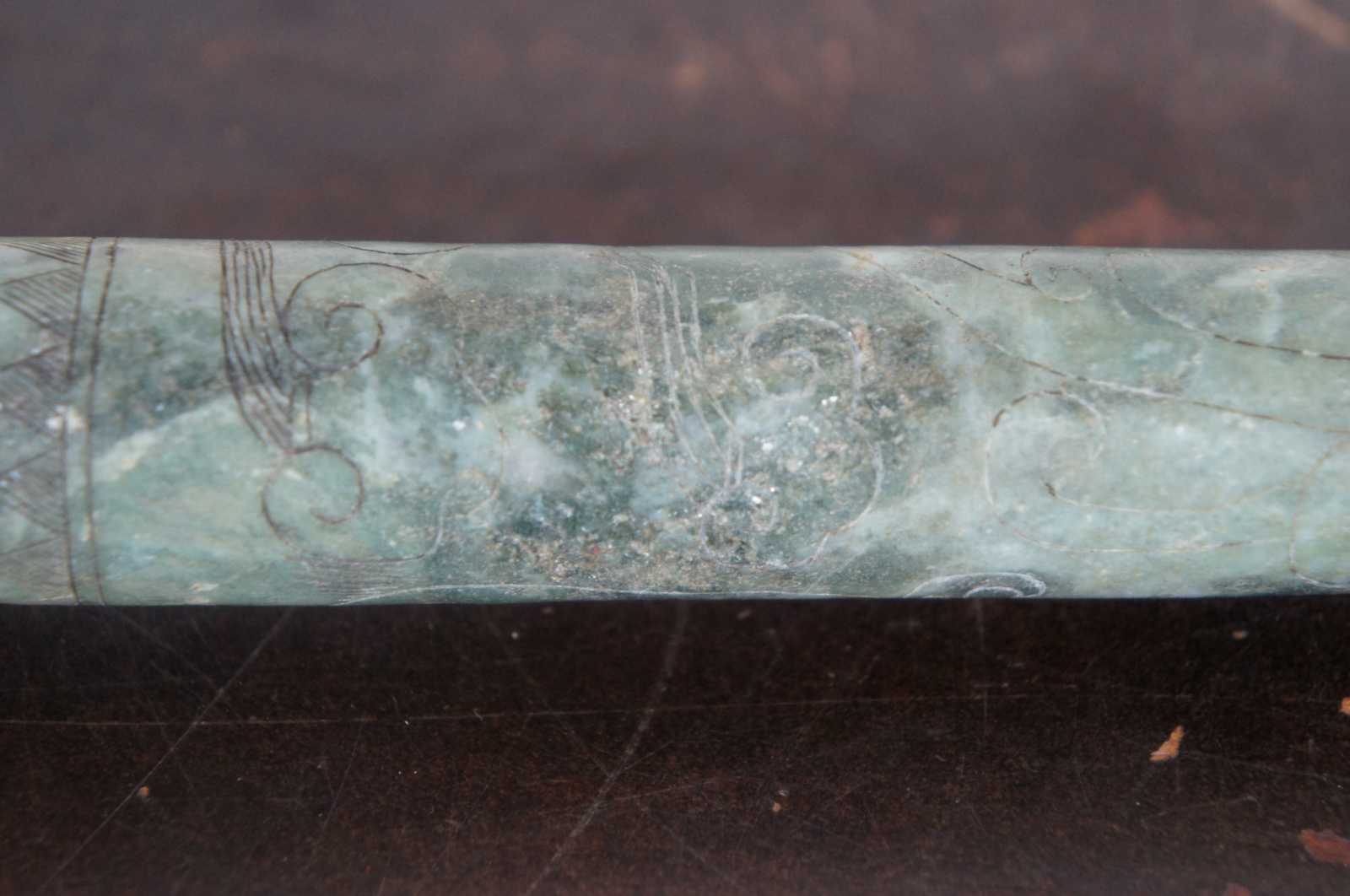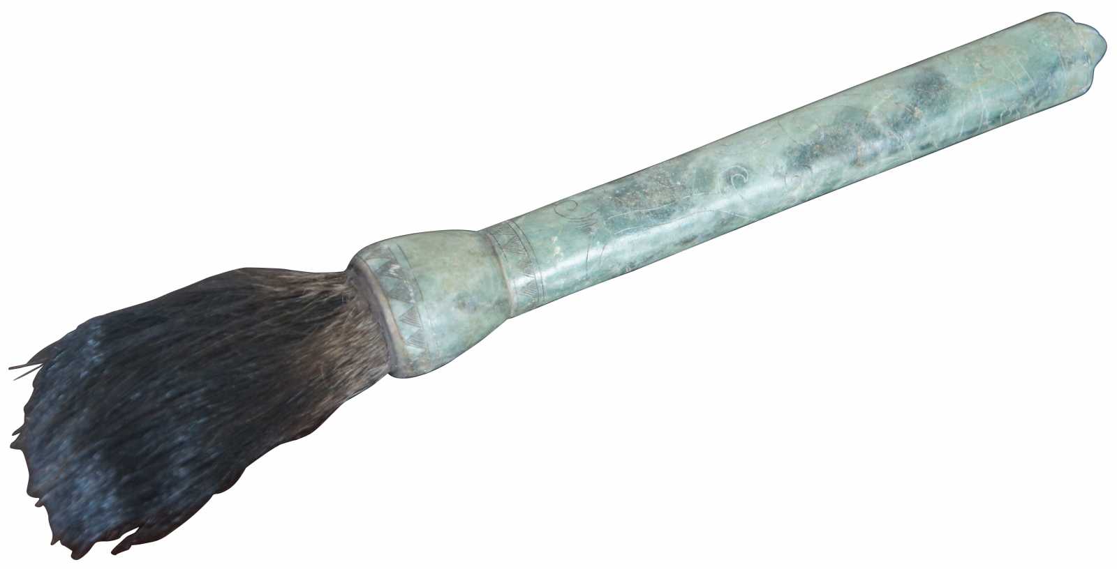 Pair of antique Chinese calligraphy brushes with horsehair bristles and carved Jade handles.