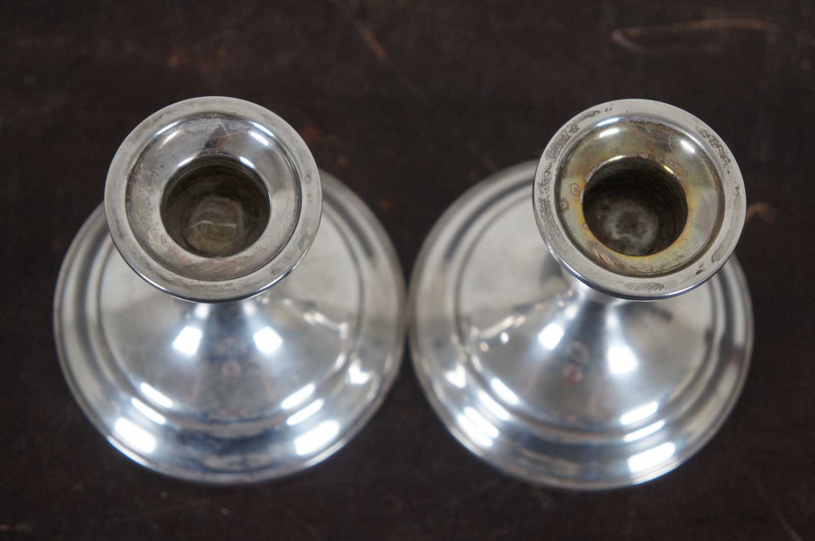 Vintage Towle sterling silver weighted and reinforced taper candlestick holder pair.