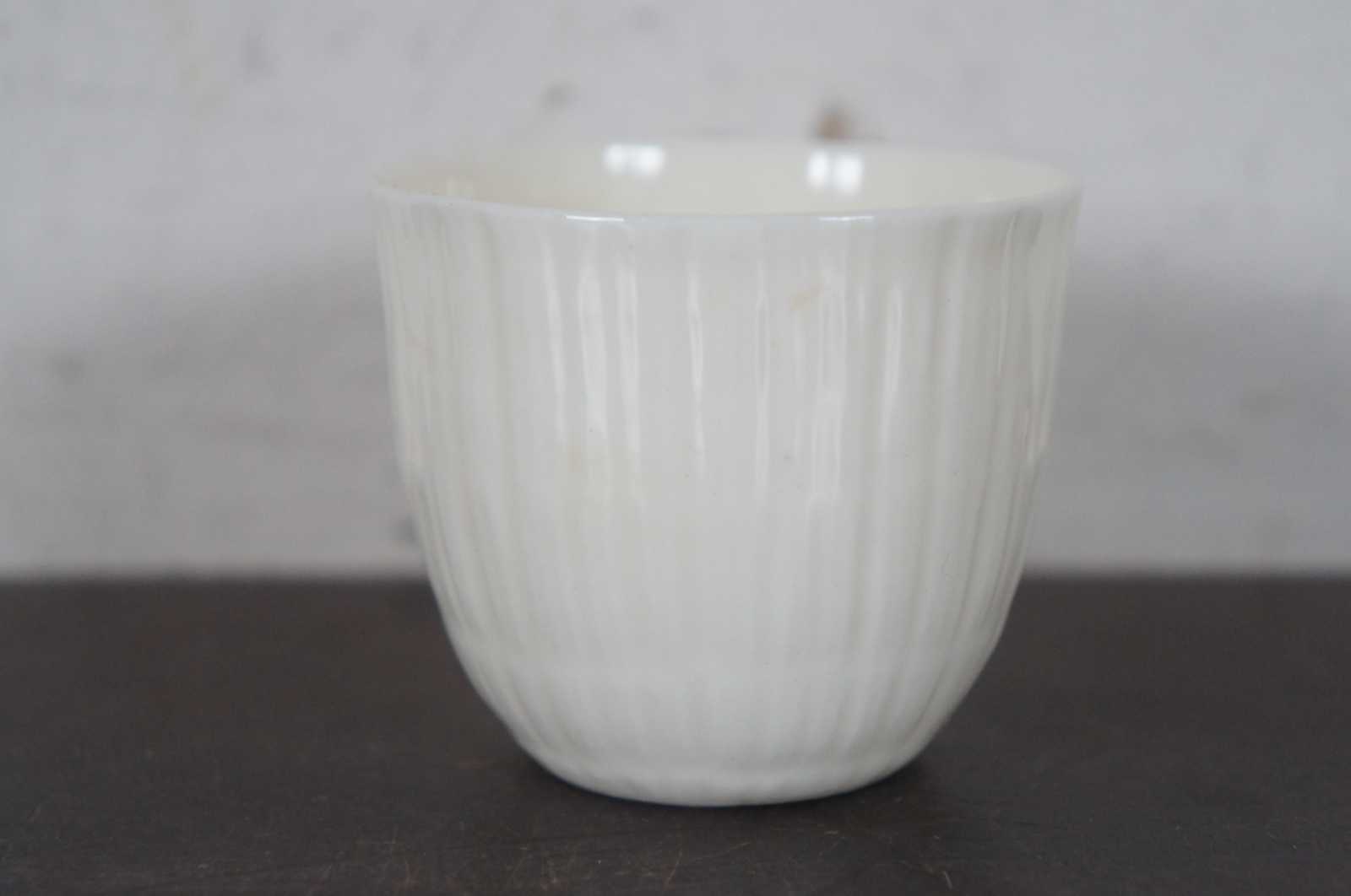 Antique Belleek Irish porcelain demitasse tea cup and saucer textured like a seashell with yellow accents.
