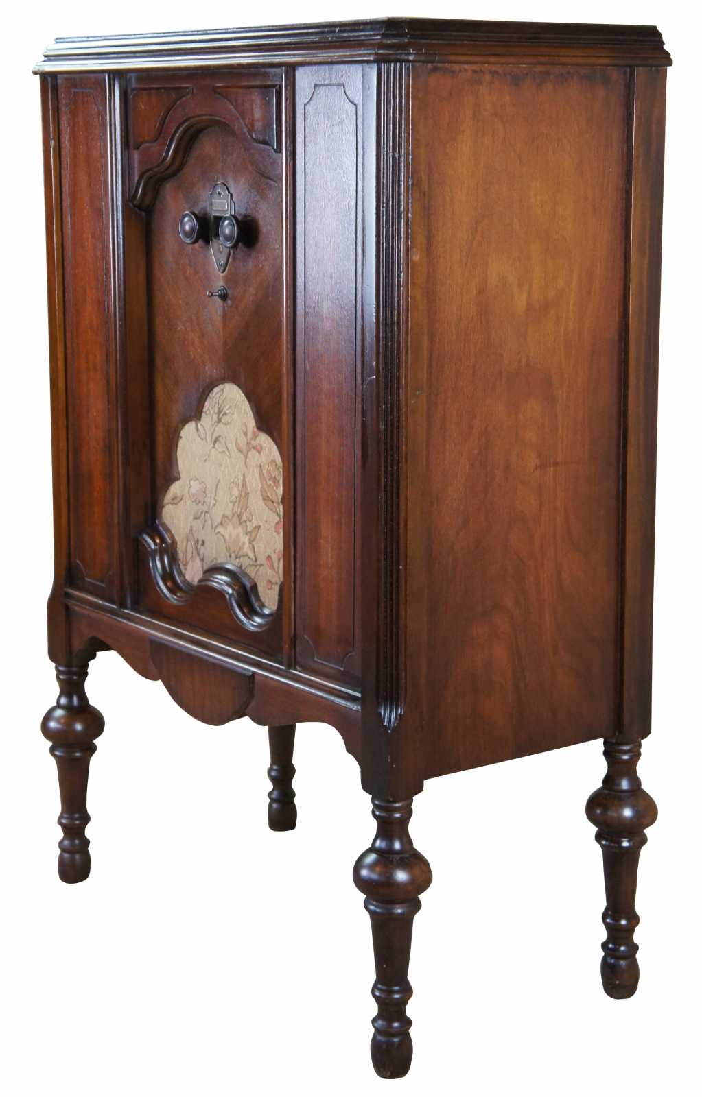 Antique Serenader Lo-boy console tube radio. Made of walnut featuring late art deco styling.