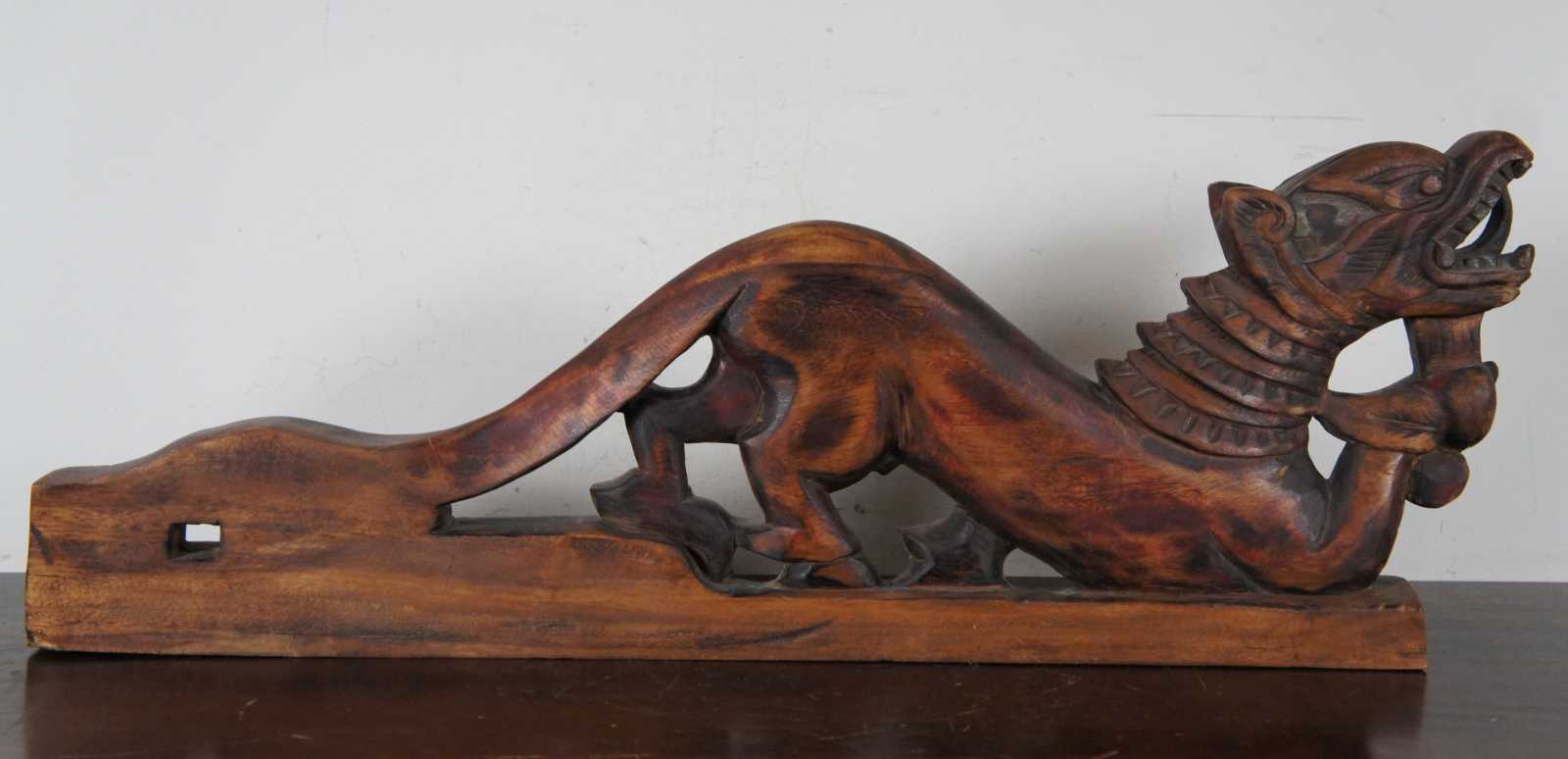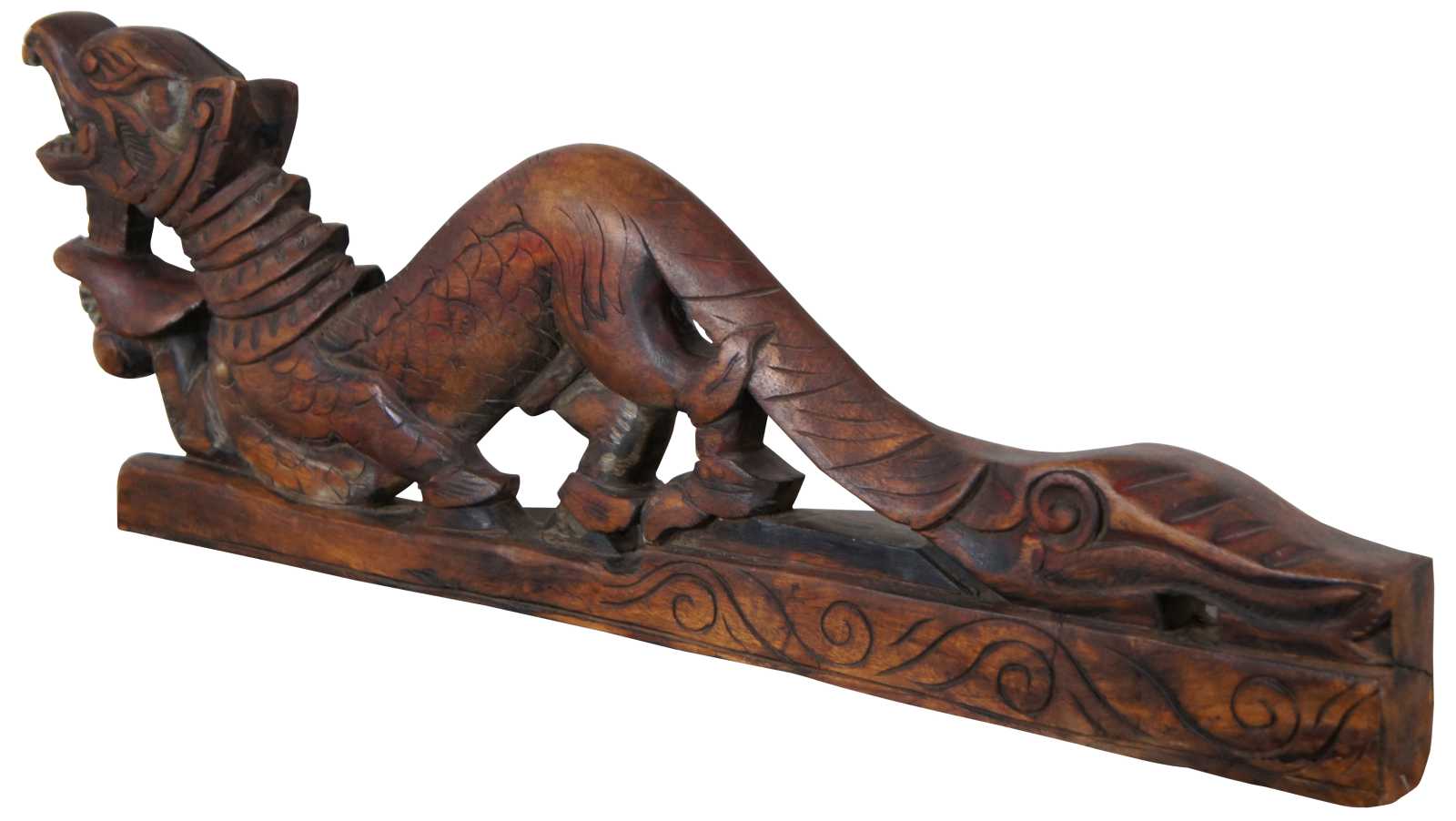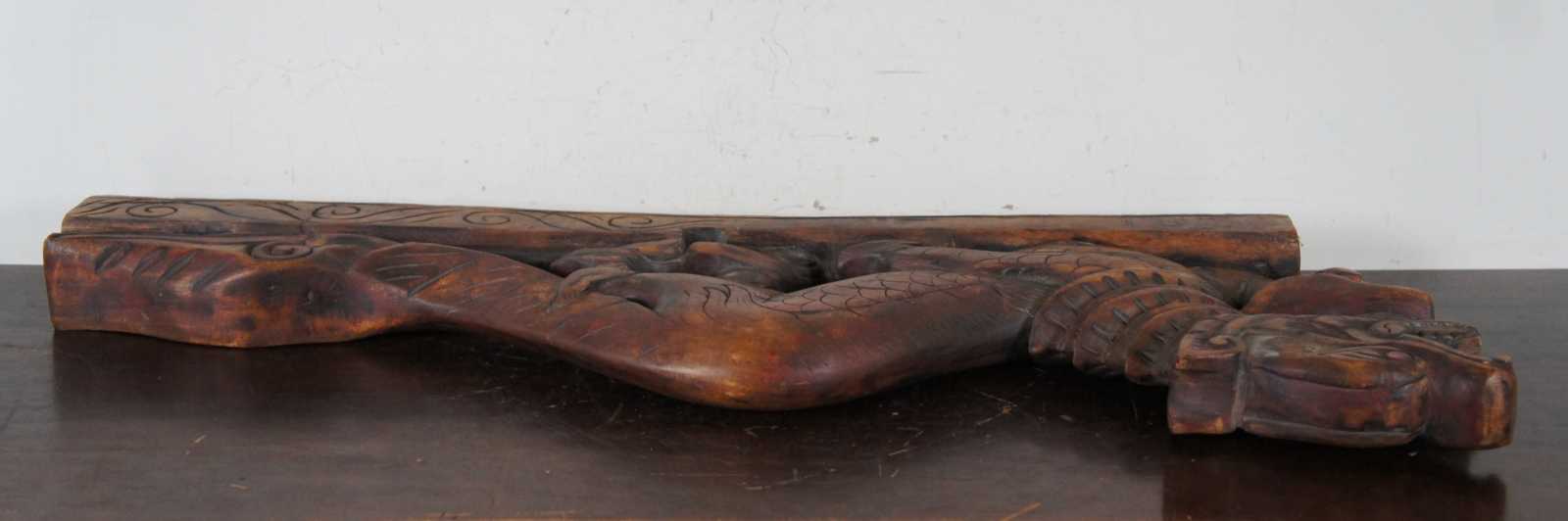 Antique rosewood Chinese carved dragon or serpent sculpture. A great pediment or embellishment for use along a table or mounted to a wall as a plaque.