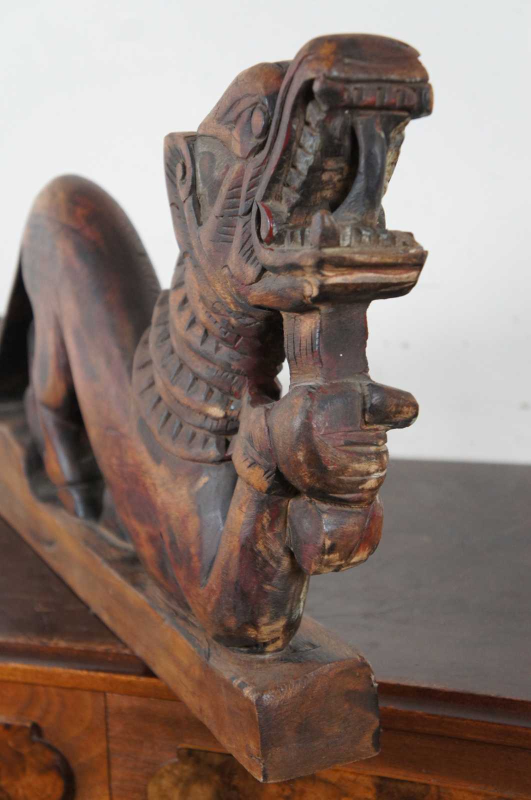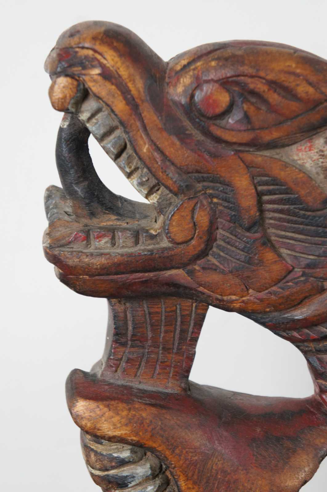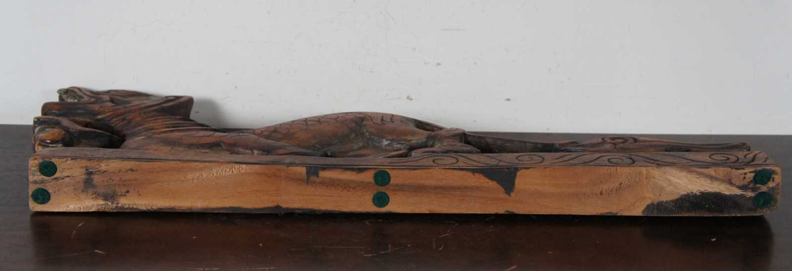 Antique rosewood Chinese carved dragon or serpent sculpture. A great pediment or embellishment for use along a table or mounted to a wall as a plaque.