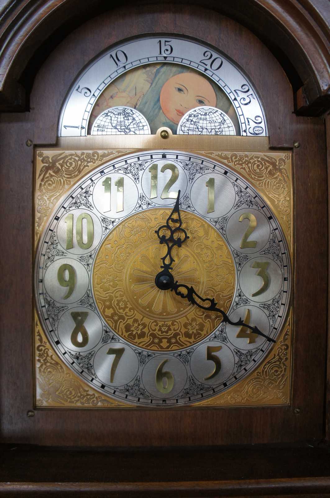 1969 Georgian Style Tall Case Walnut Grandfather Clock Sun Moon Dial Works 89"