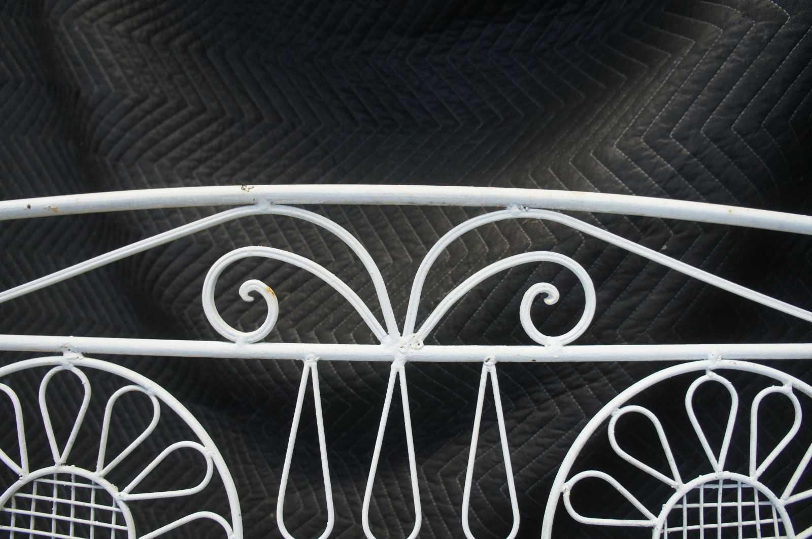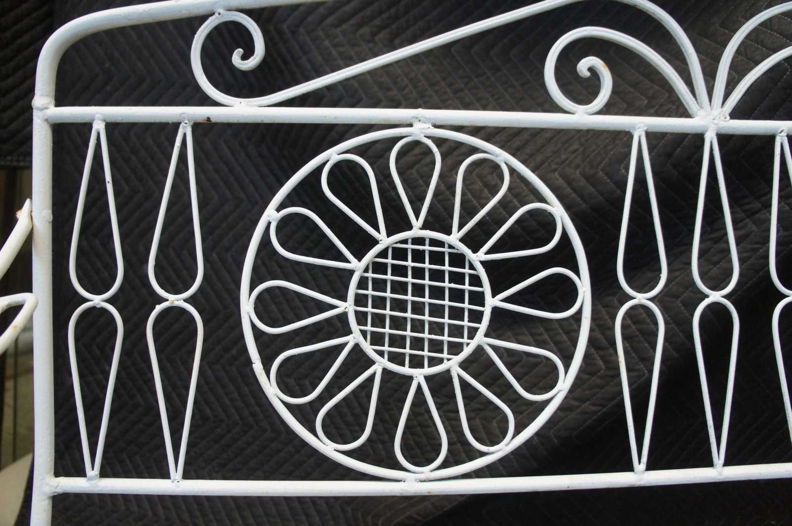 Mid 20th century iron outdoor bench/ settee. Features a neat interlaced design of flowers.