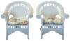 Two vintage bamboo, wicker and rattan armchairs featuring a rolled arm with circular braided wheel accent and interlocking rattan loop design.