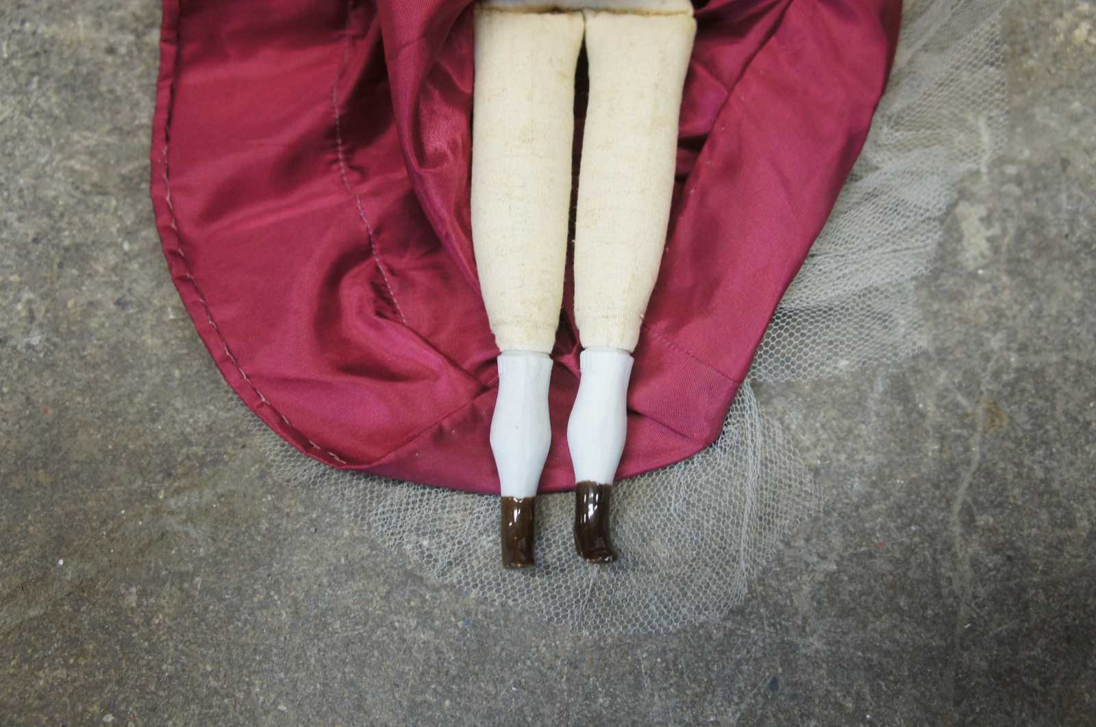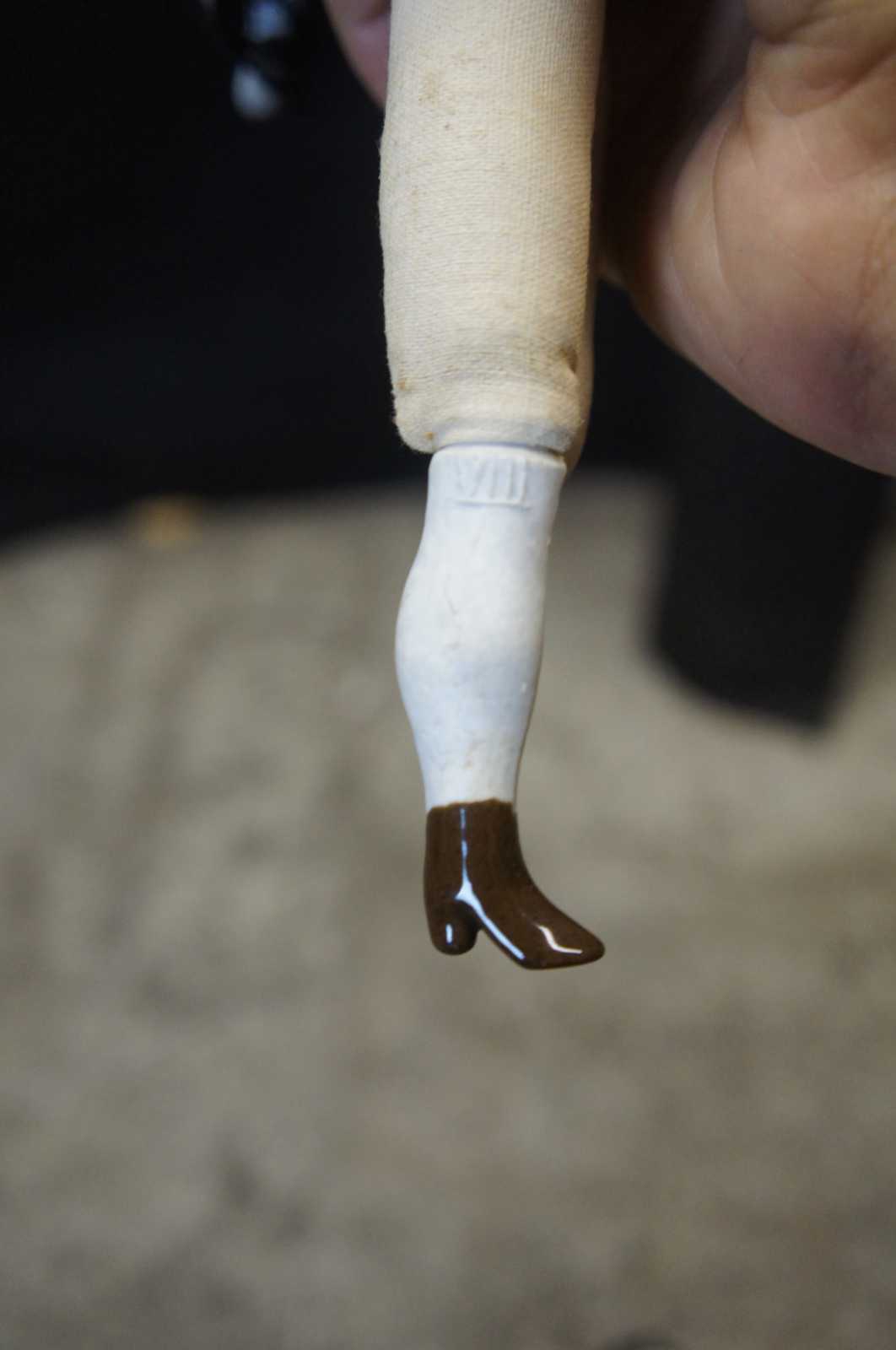 A pair of early 1900s Hertwig china head dolls. Made from Porcelain with marked back plates. Features classic attire, bisque limbs and cloth body.