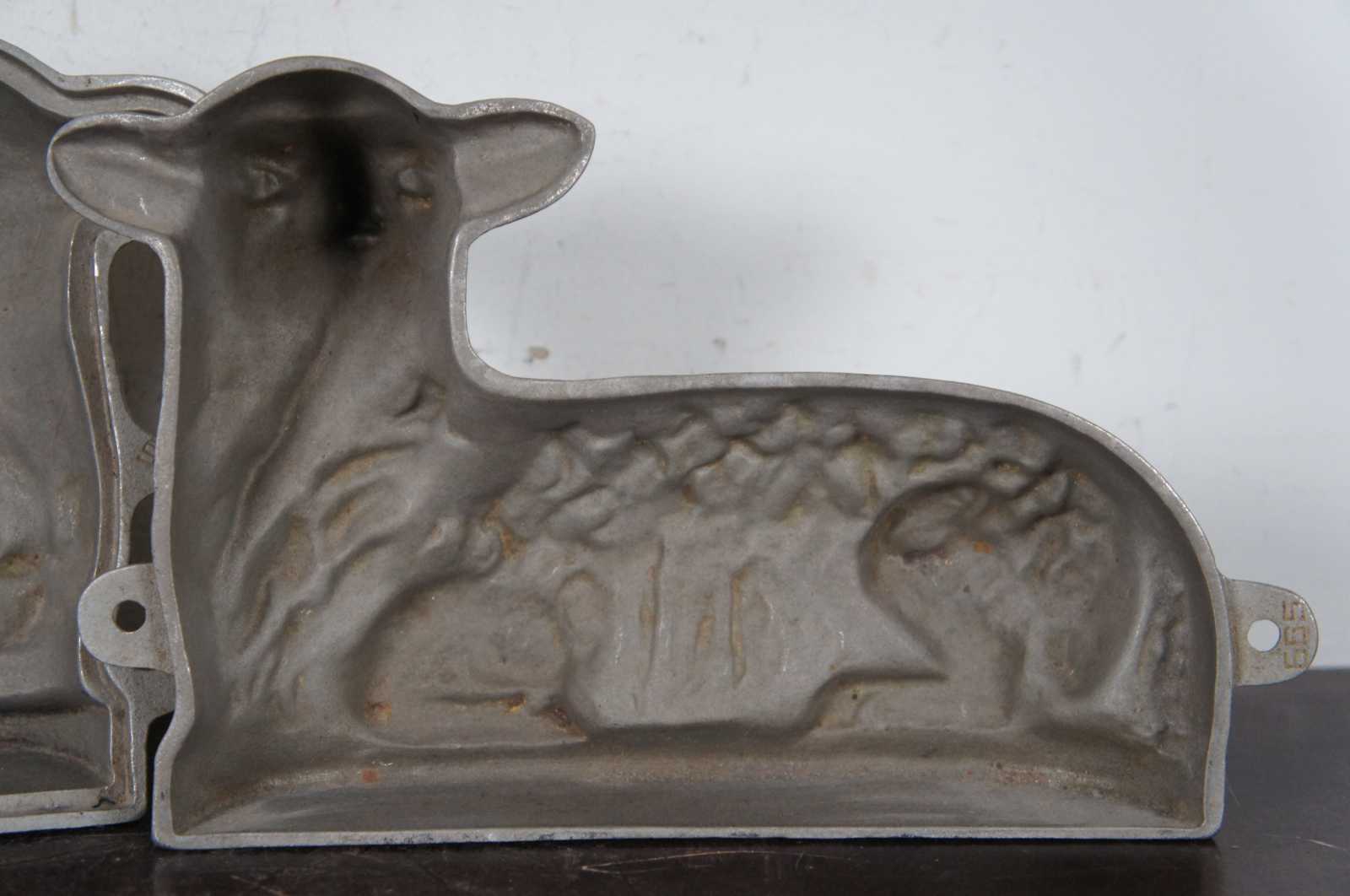 Vintage two piece cast aluminum lamb or sheep shaped cake pan or chocolate mold.