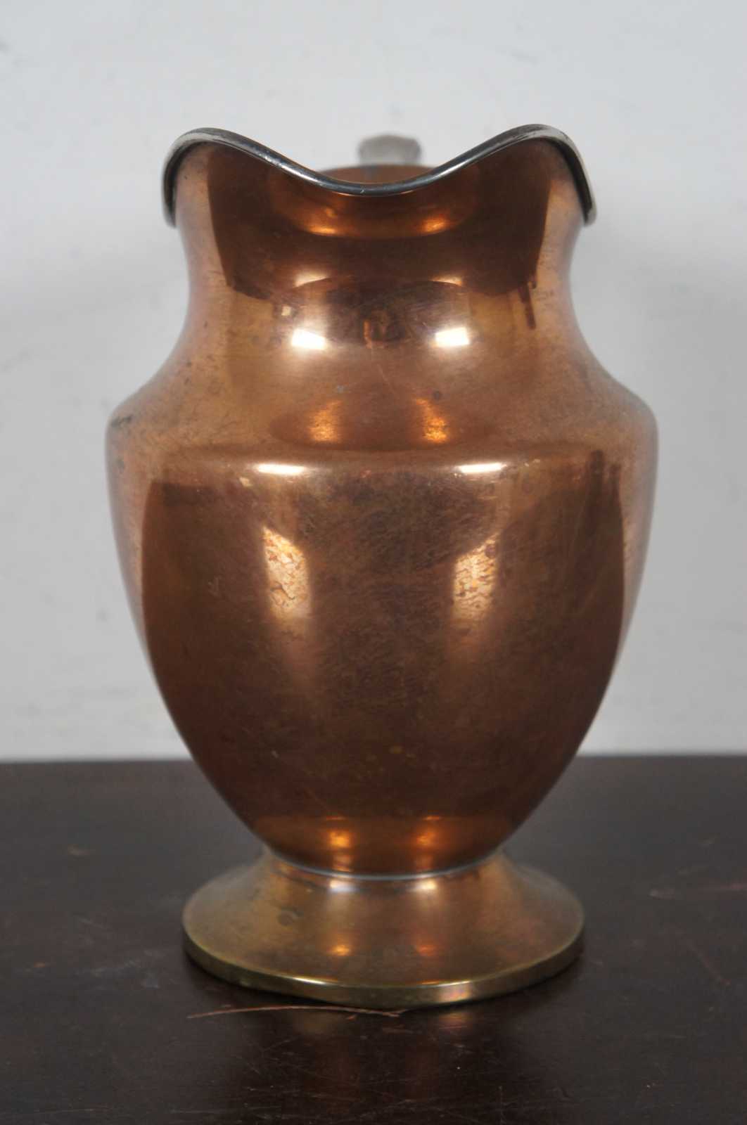 Antique Landers, Frary, & Clark Universal water pitcher. Made of copper with brass base and metal handle.