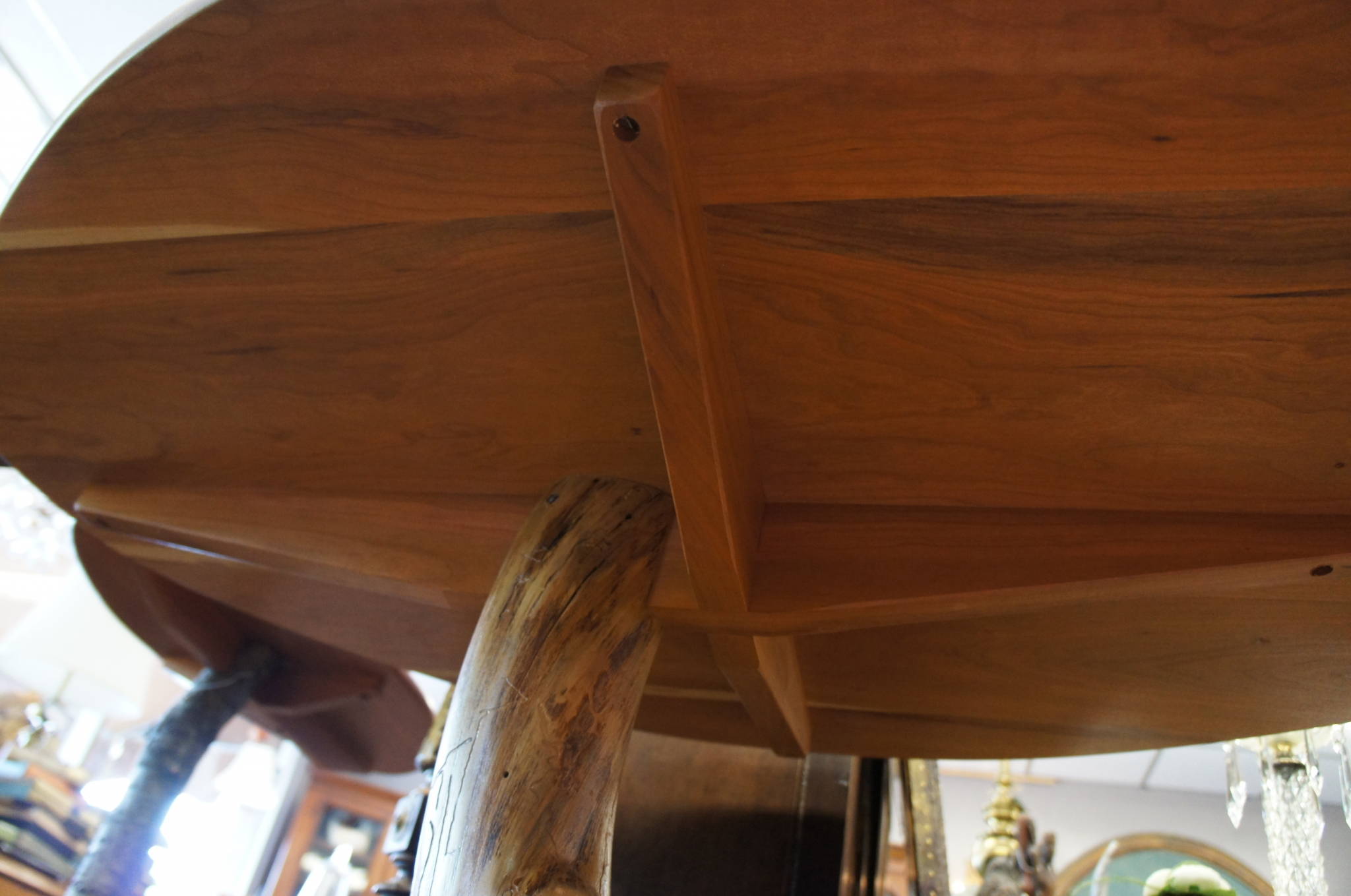This table was custom made by hand in Dayton, Ohio. It is made of Apple and Cherry.