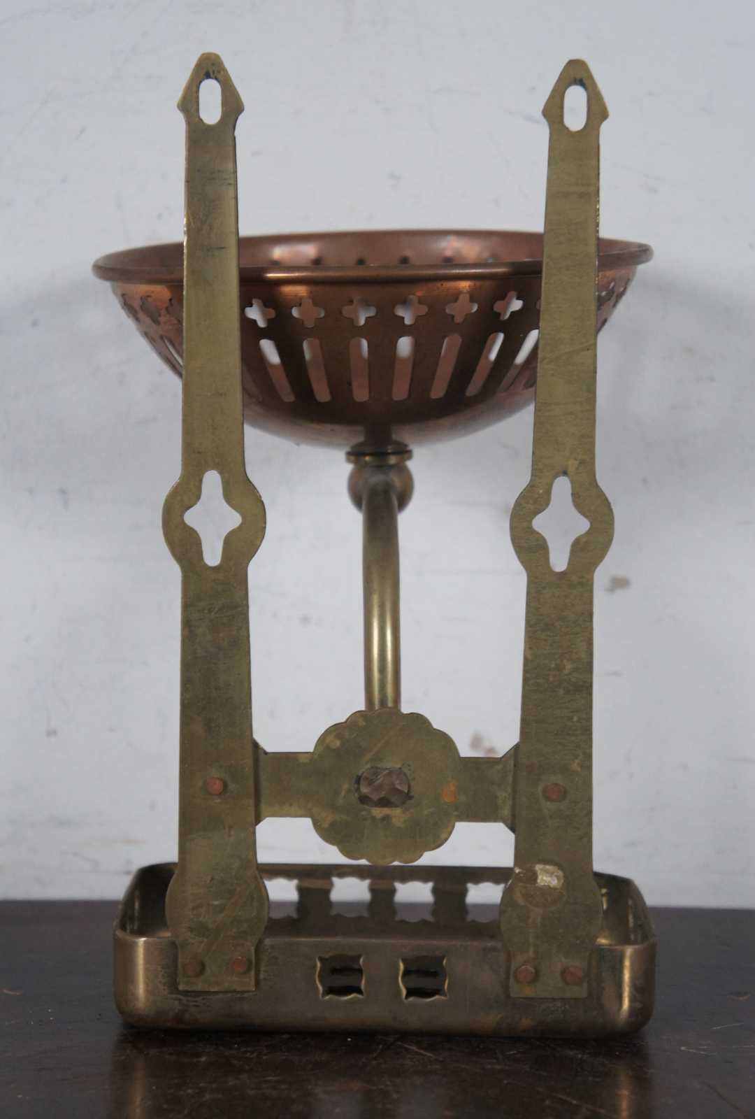 Antique Victorian wall mounted pierced copper and brass soap and sponge holder. circa 1900s