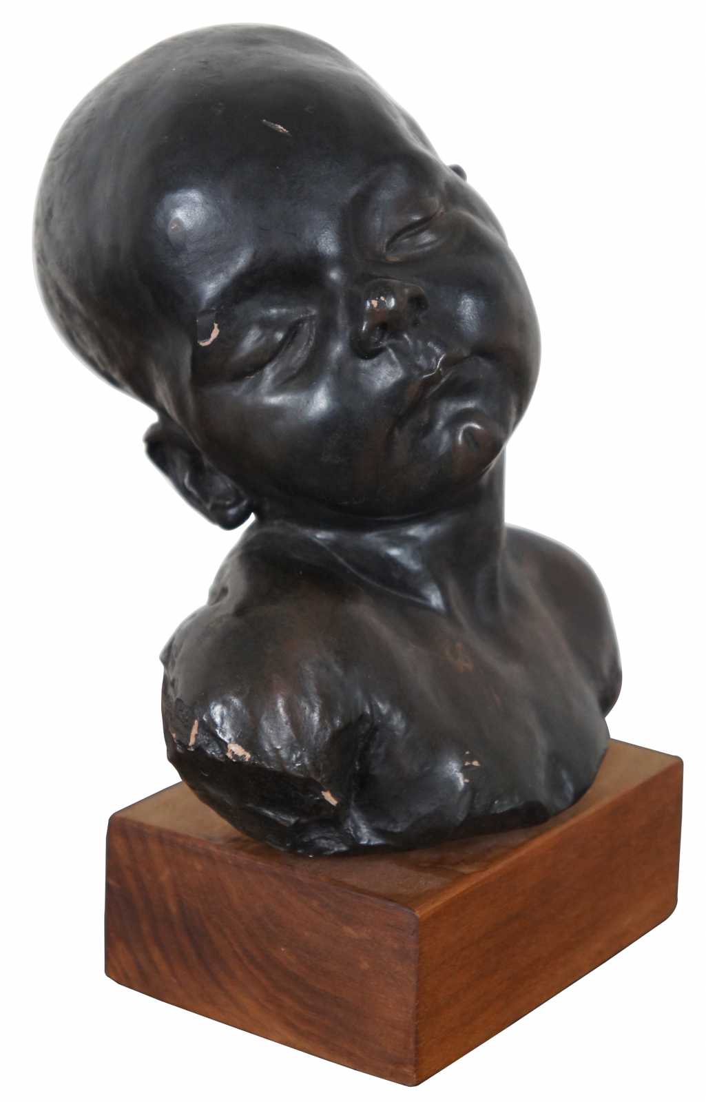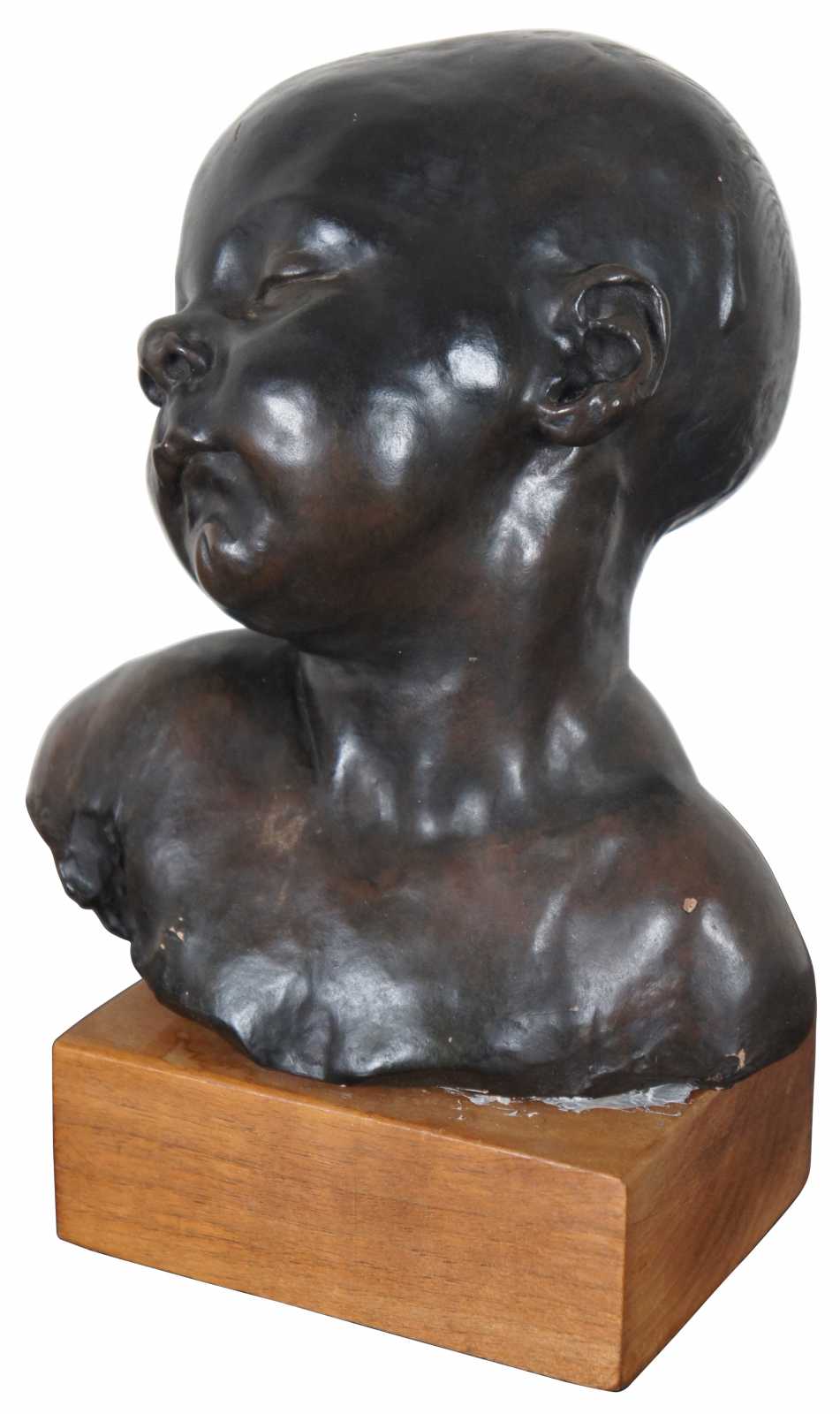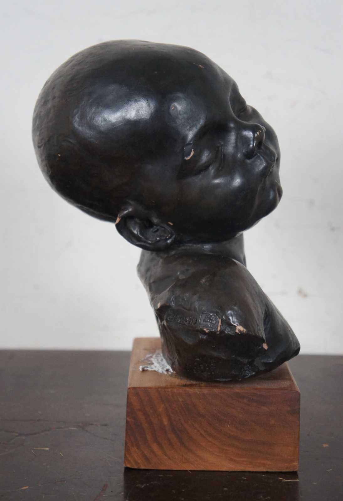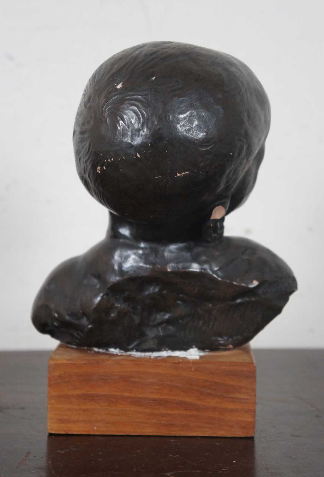 Vintage Alvastone reproduction desktop or bookshelf sculpture by Alva Museum Replicas of the Head of a Sleeping Baby sculpture by Jules Dalou. “Aime-Jules Dalou (1838-1902) was a French sculptor, recognized as one of the most brilliant virtuosos of nineteenth-century France, admired for his perceptiveness, execution, and unpretentious realism.