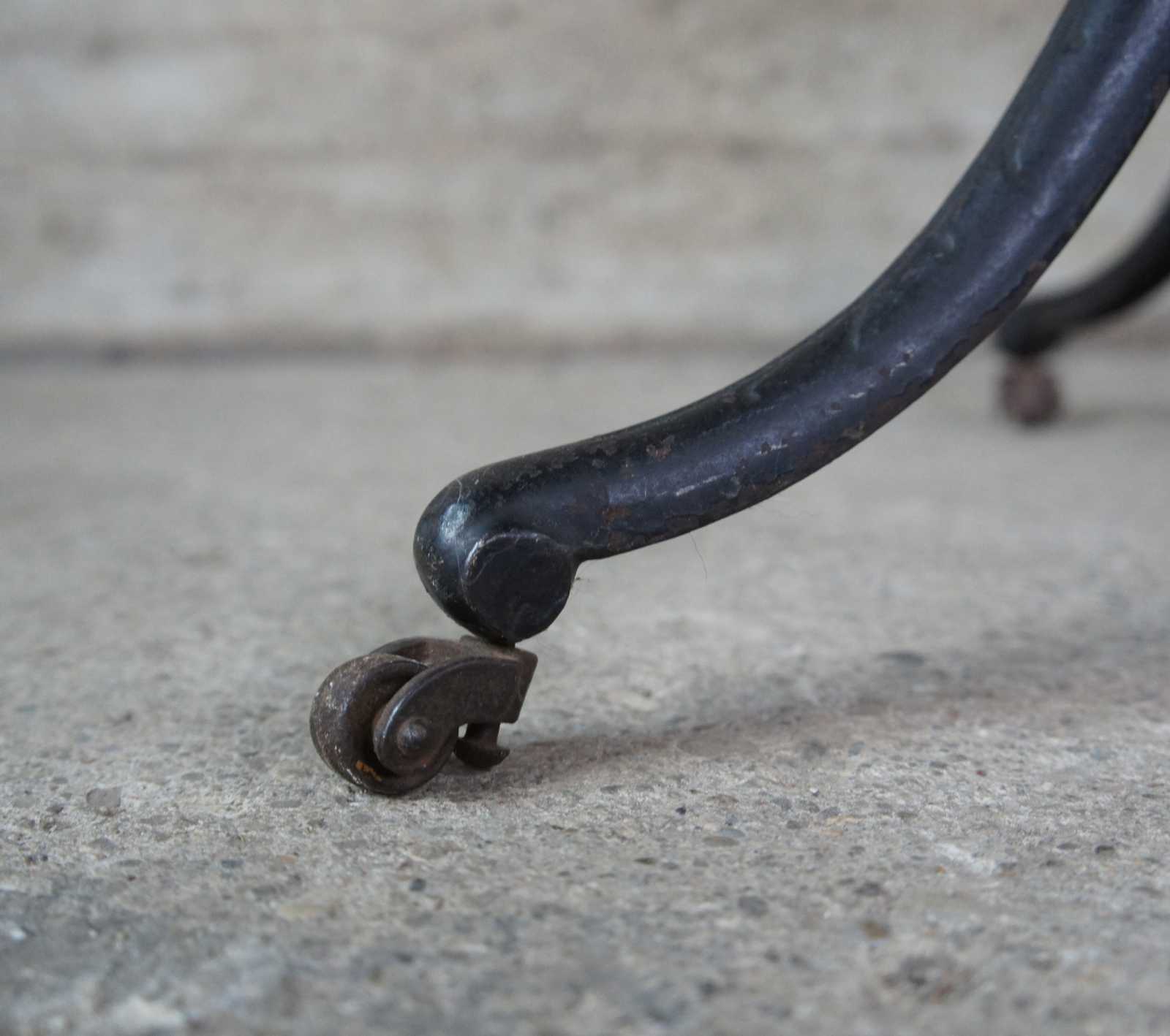 Antique 19th century Victorian adjustable book stand or library lectern featuring ornate wrought iron pedestal base and quartersawn oak book holder.