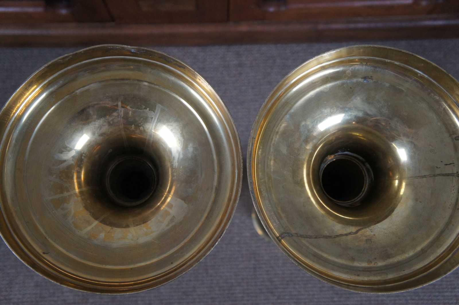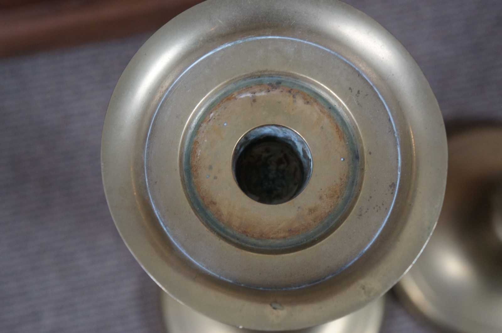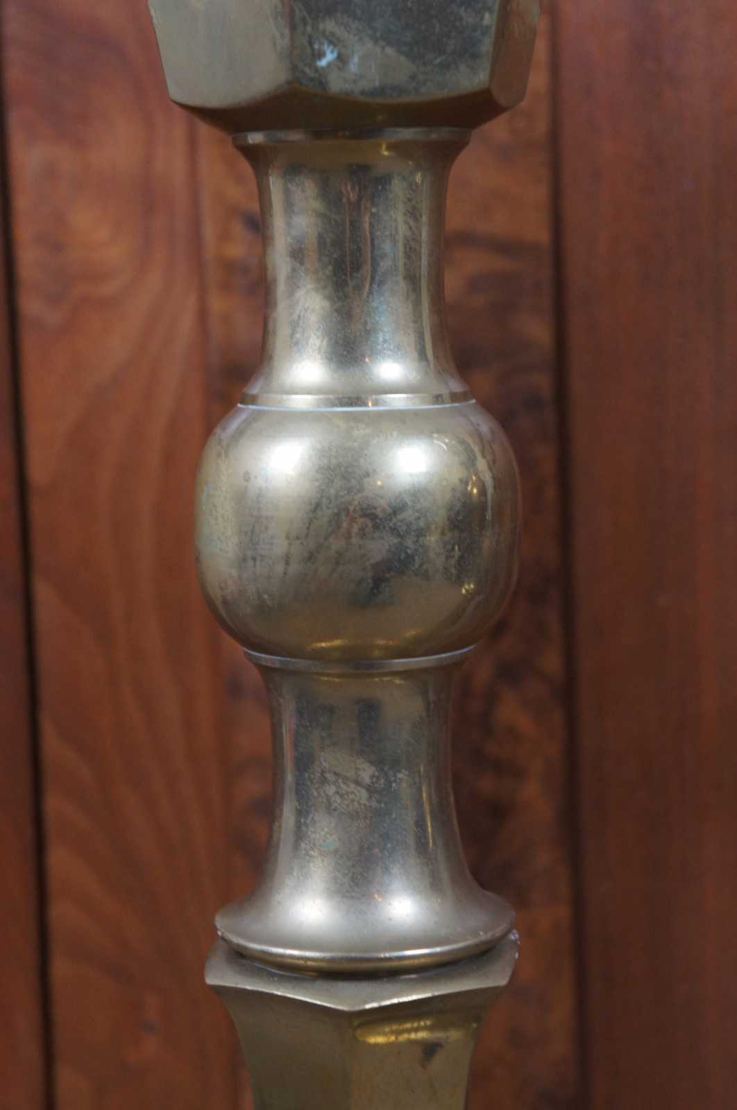 Pair of vintage made in India heavy brass altar candlesticks. Tops accommodate taper, votive or large pillar candlesticks.