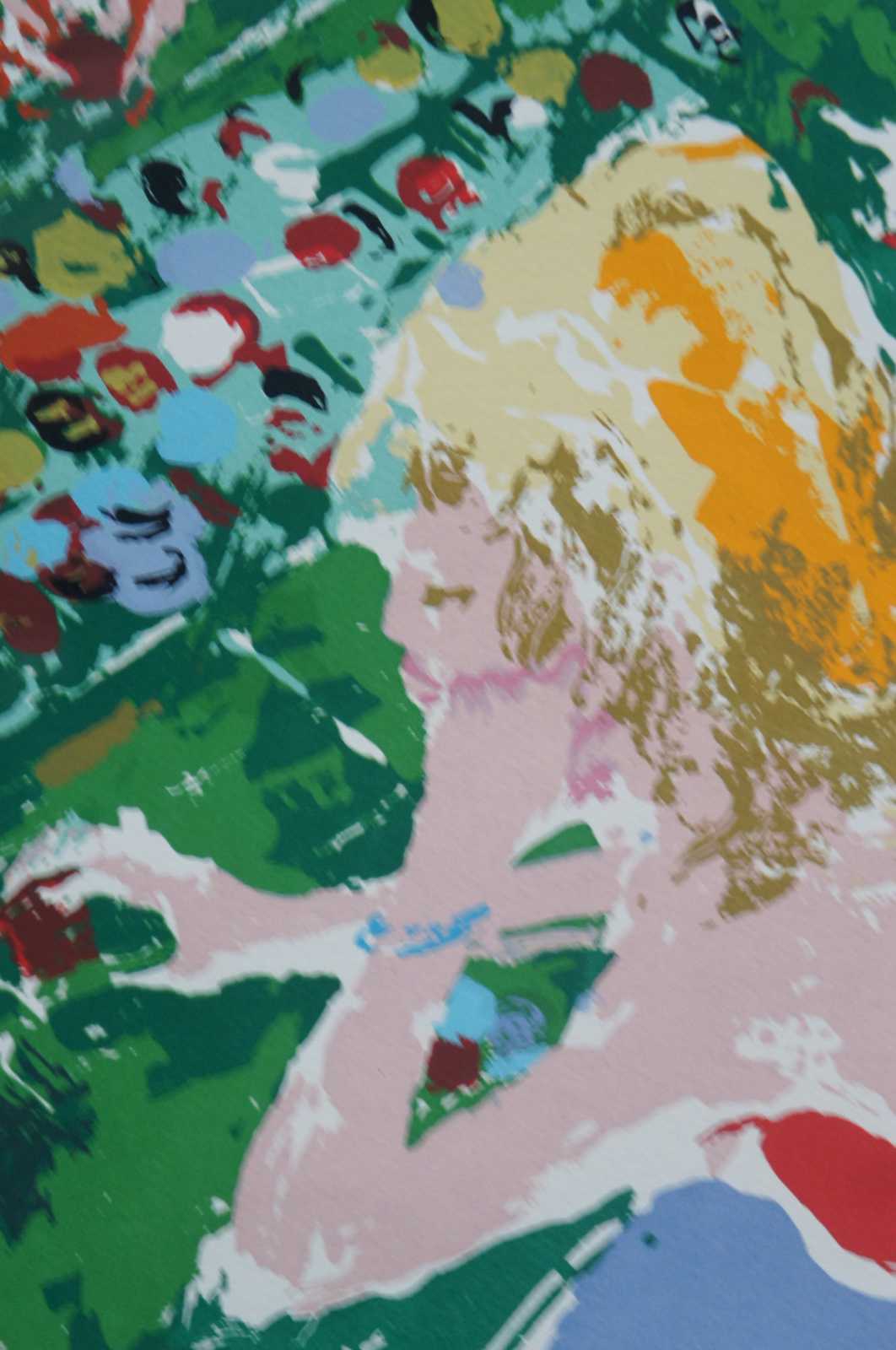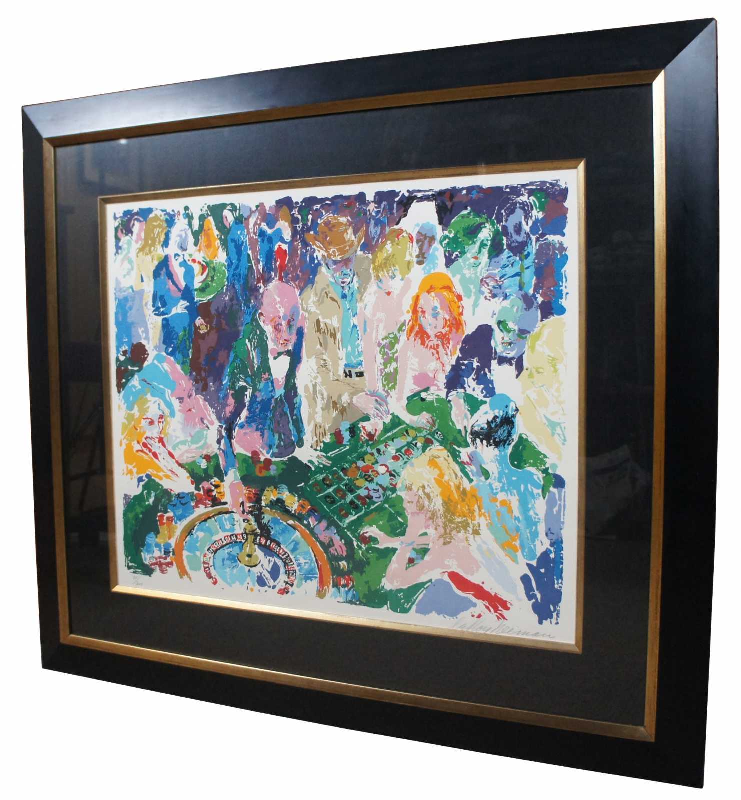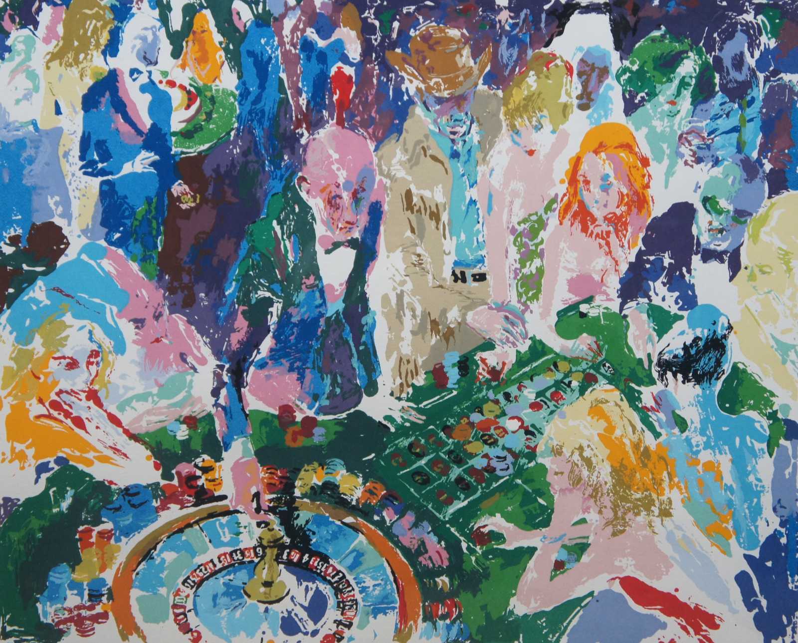 Vintage 1972 serigraph print “casino,” pencil signed and numbered 95/300 by LeRoy Neiman, showing a roulette table in a crowded casino. “LeRoy Neiman (1921-2012)