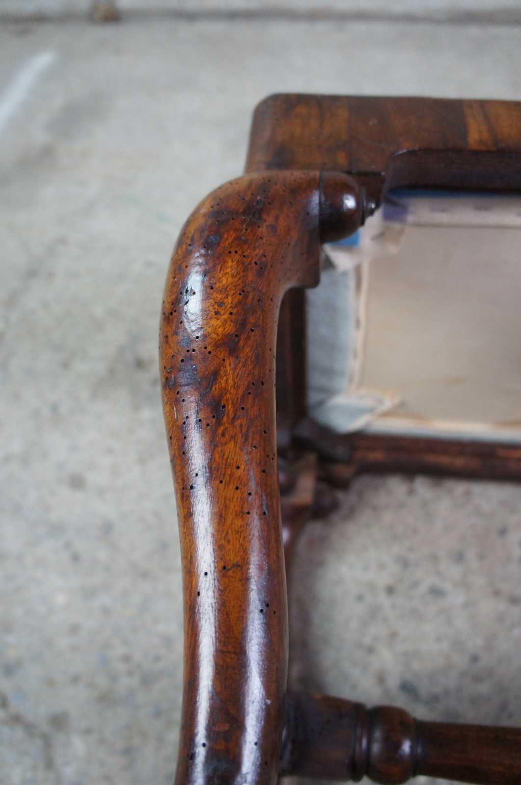 Wear commensurate with age and use. Worm holes and veneer loss. Structurally solid