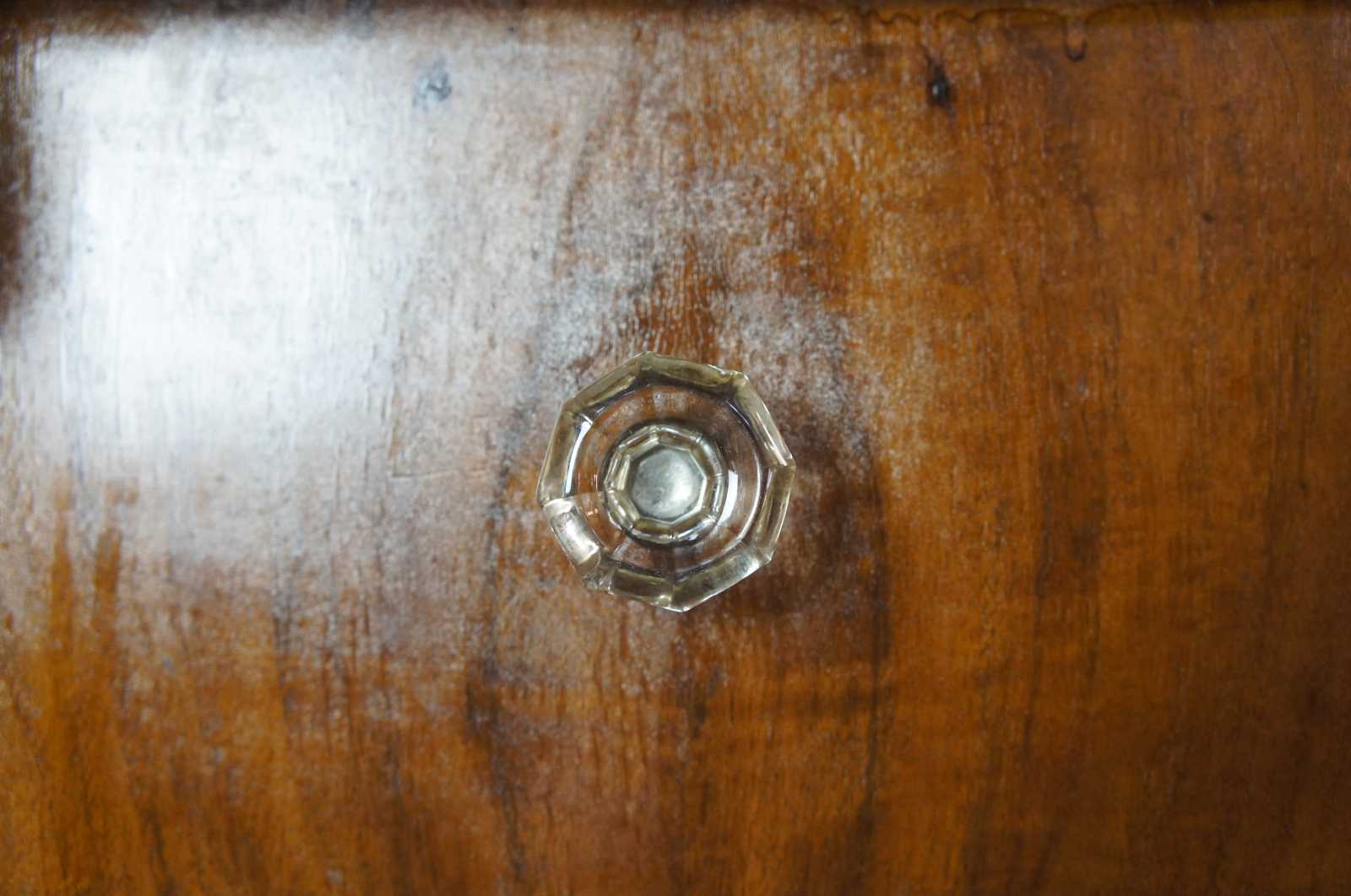 Good antique condition, wear and distressing commesnsurate with age and use, some edge / veneer wear / finish loss, streaking to mirror.